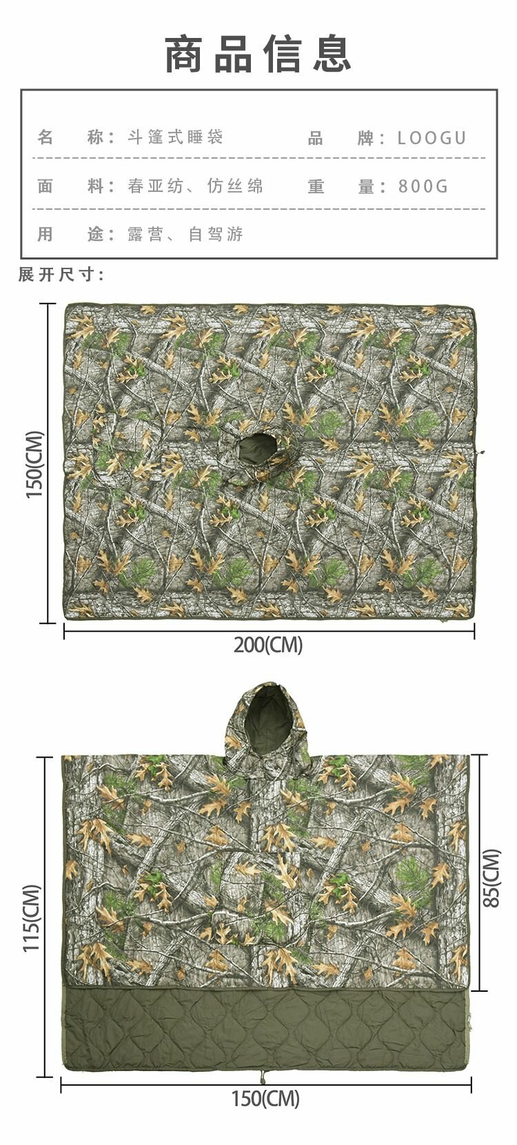 Армейский Камуфляжный Спальный Мешок-плащ Утепленный Портативный интересное:
