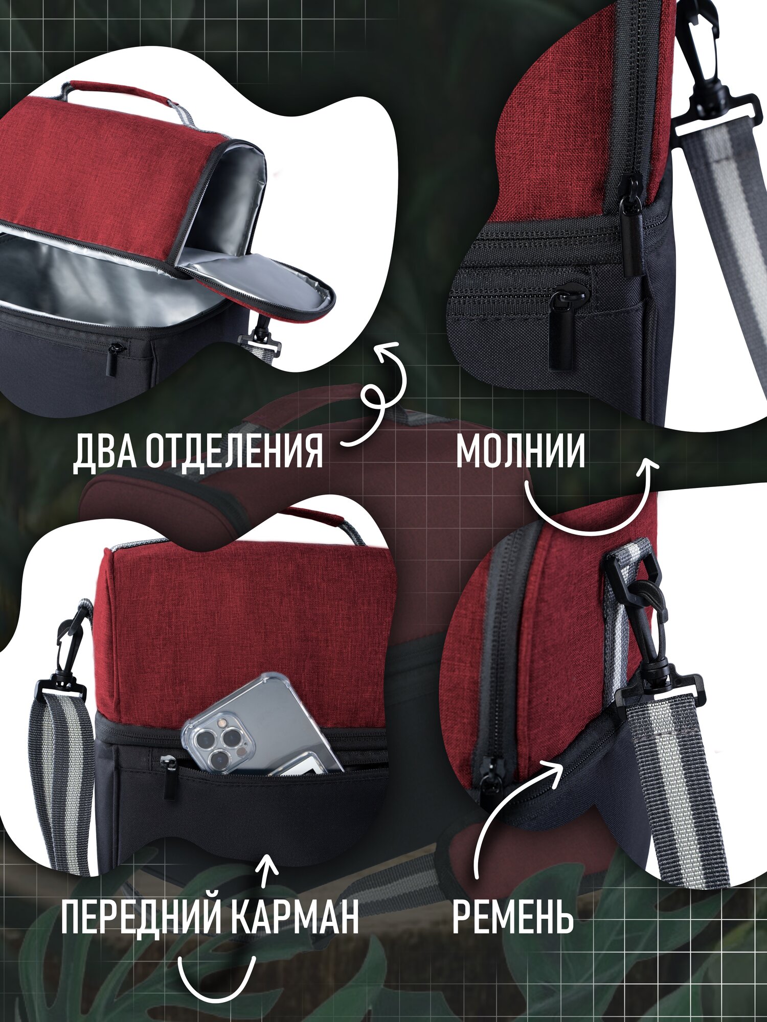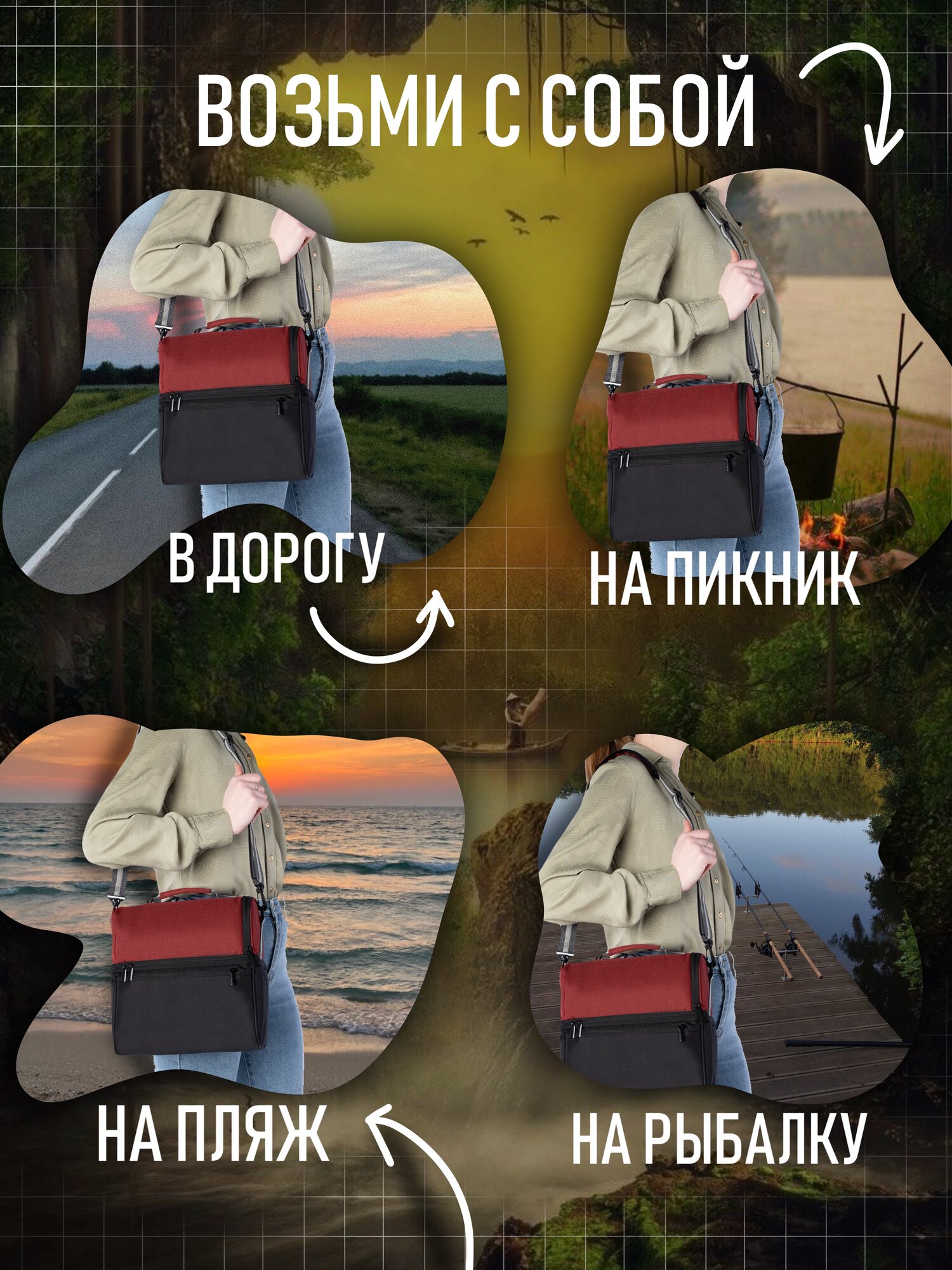 Термосумка холодильник для продуктов и напитков / для ланча (пикника), объем 12 литров, бордовый + аккумулятор холода интересное: