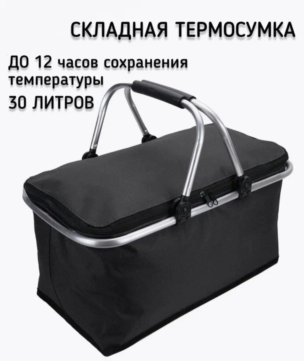 Термосумка-холодильник складная, вместимость 30л, изотермический слой 3мм, 12ч температуры, черная, красная. интересное: