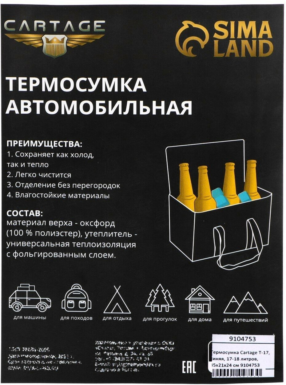 Термосумка Cartage Т-17, синяя, 17-18 л, 35х21х24 см, 9104753 интересное: