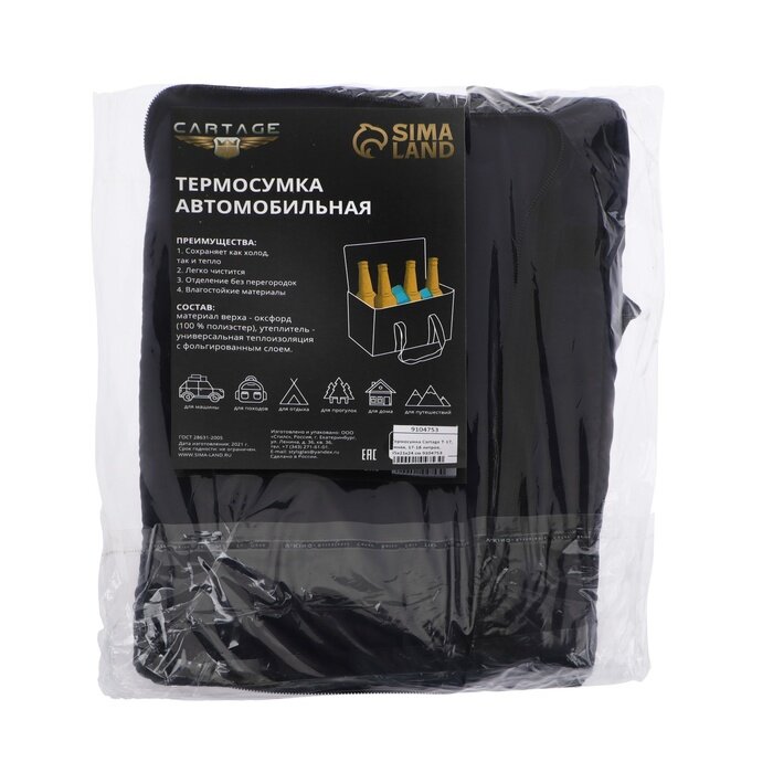 Термосумка Cartage Т-10, черная, 18 л, 35×21×24 см
