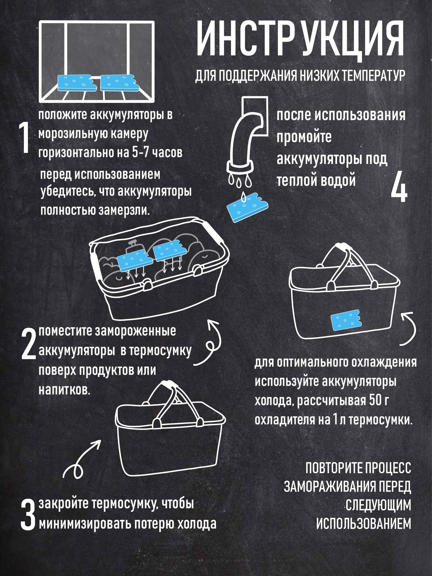 Аккумуляторы холода на водной основе 4 штуки, размер 16x9,3 см, сохраняет температуру от 12 до 24 часов интересное: