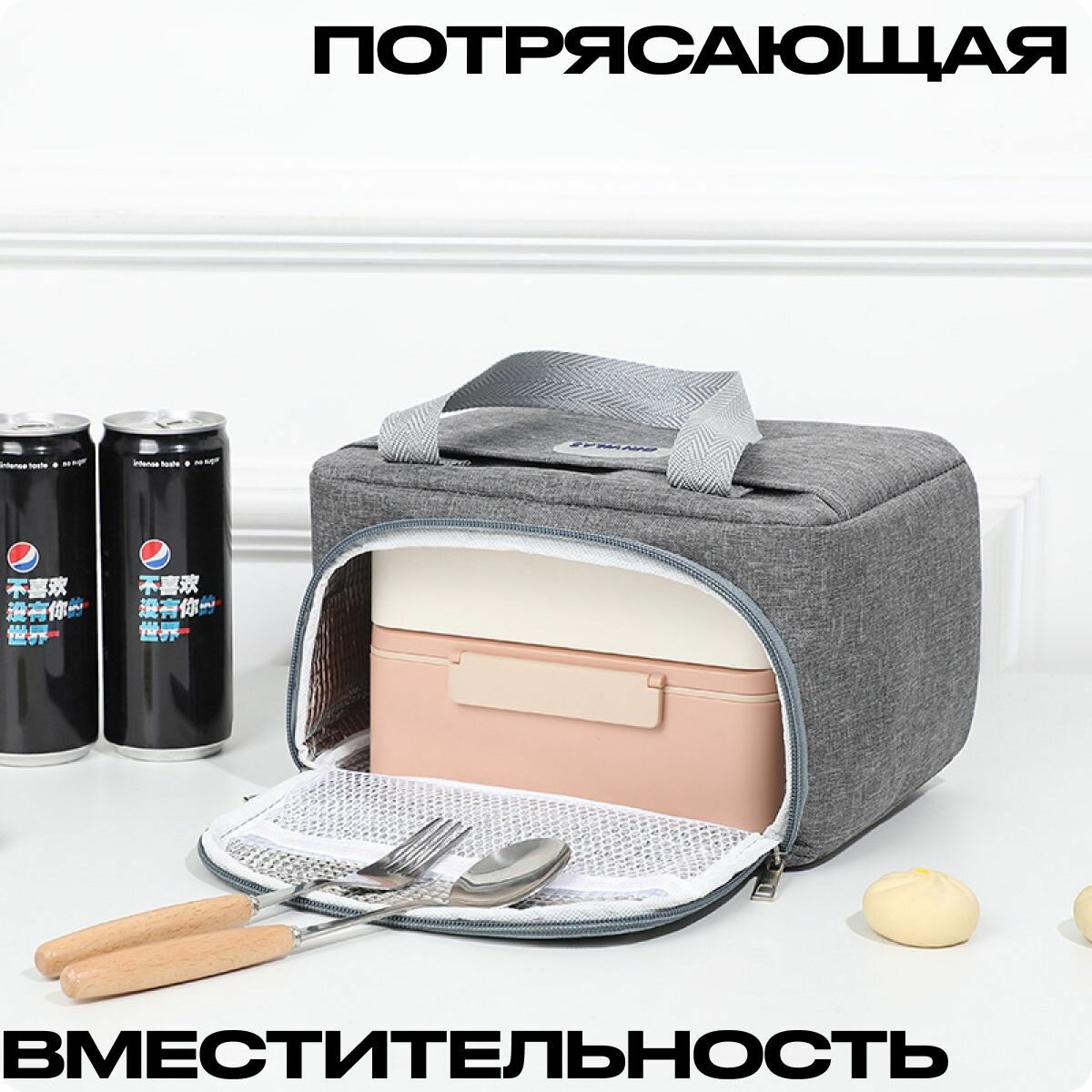 Термосумка для ланч-бокса синяя 4 литра. Сумка-холодильник компактная. интересное: