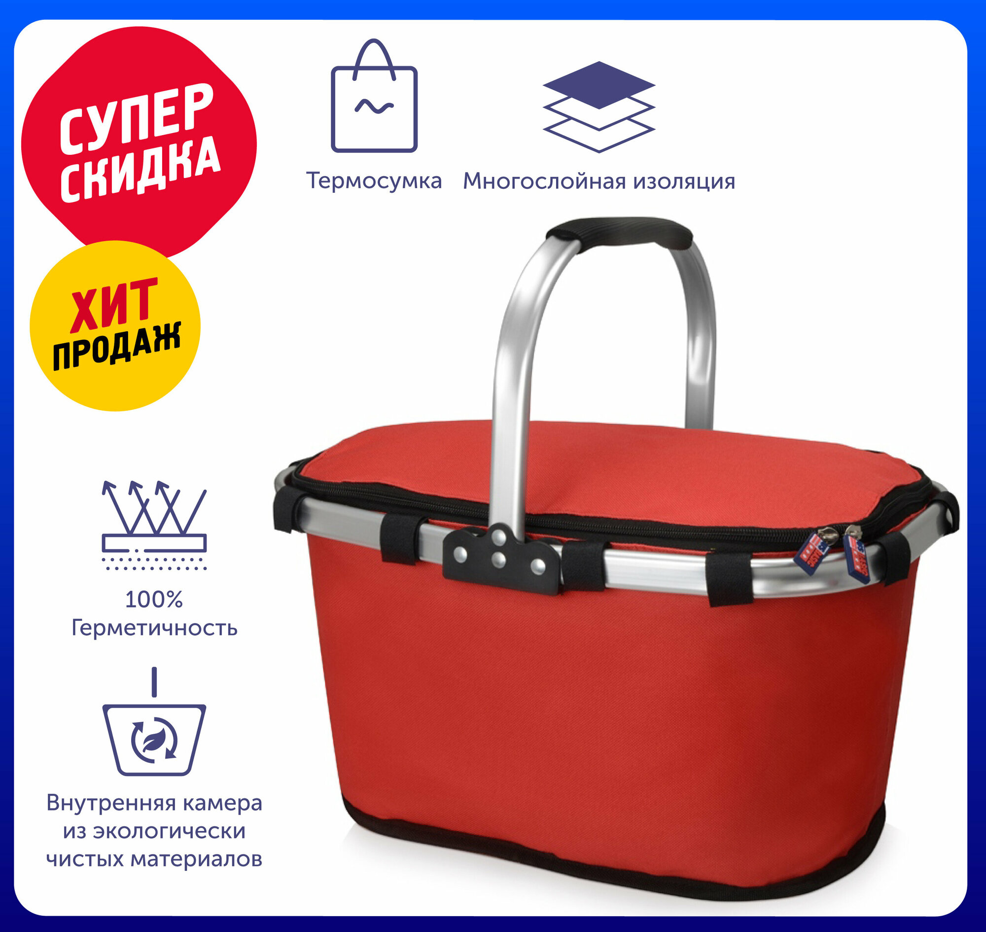 Изотермическая сумка-холодильник "Frost" складная на 27 л, цвет красный интересное: