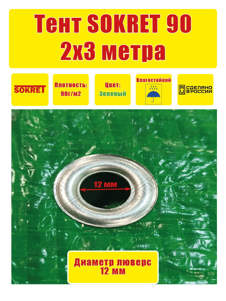 SOKRET Тент универсальный c люверсами 2х3м, 90г/м2 зеленый, строительный, укрывной, хозяйственный интересное: