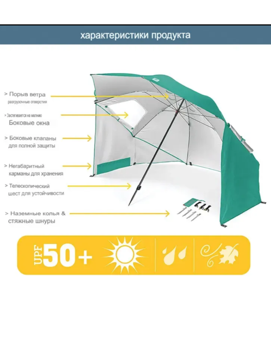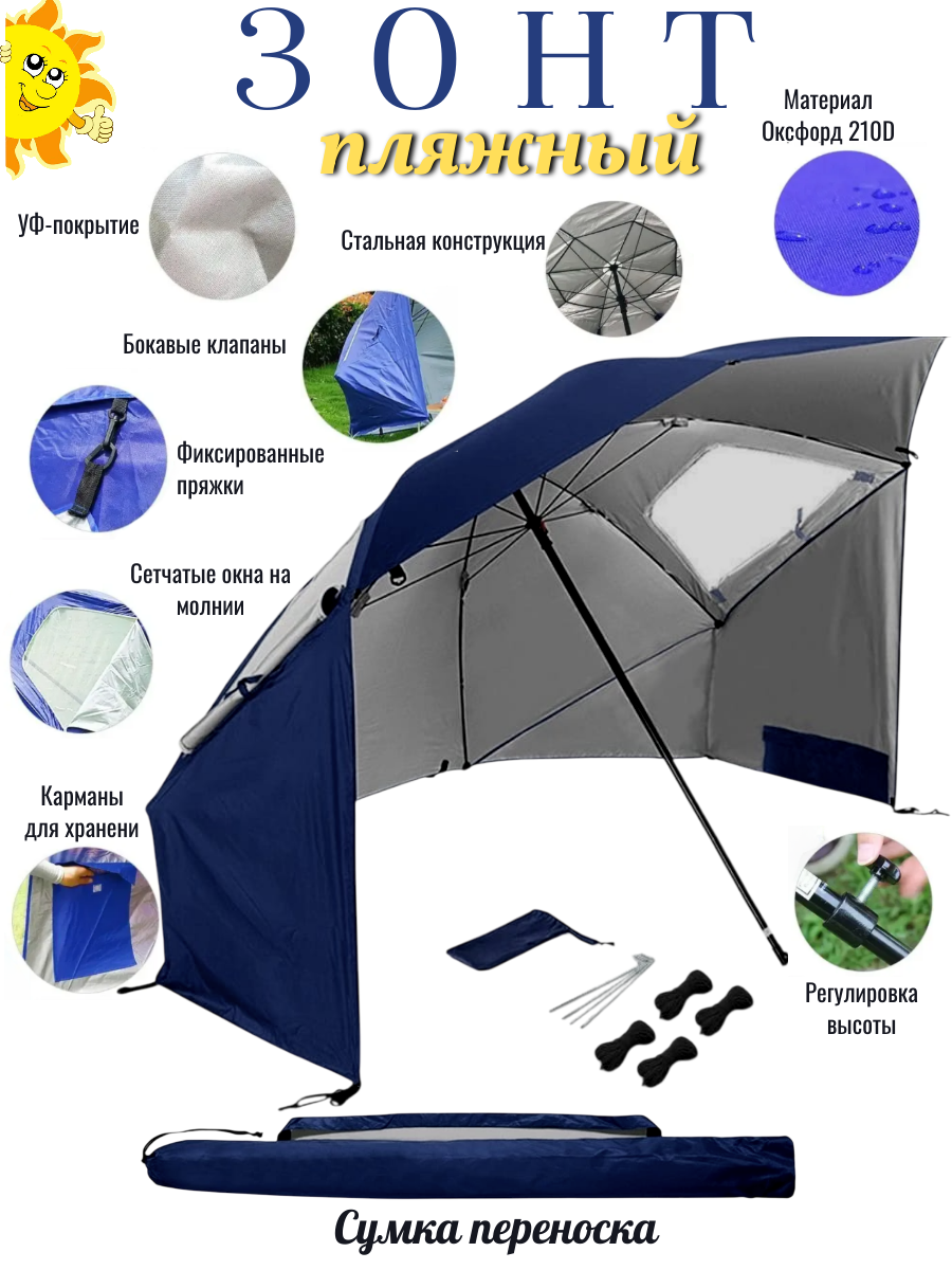 Пляжная палатка / Тент от солнца, 240см, темно-синий, водоотталкивающий, складной, с чехлом, металл интересное: