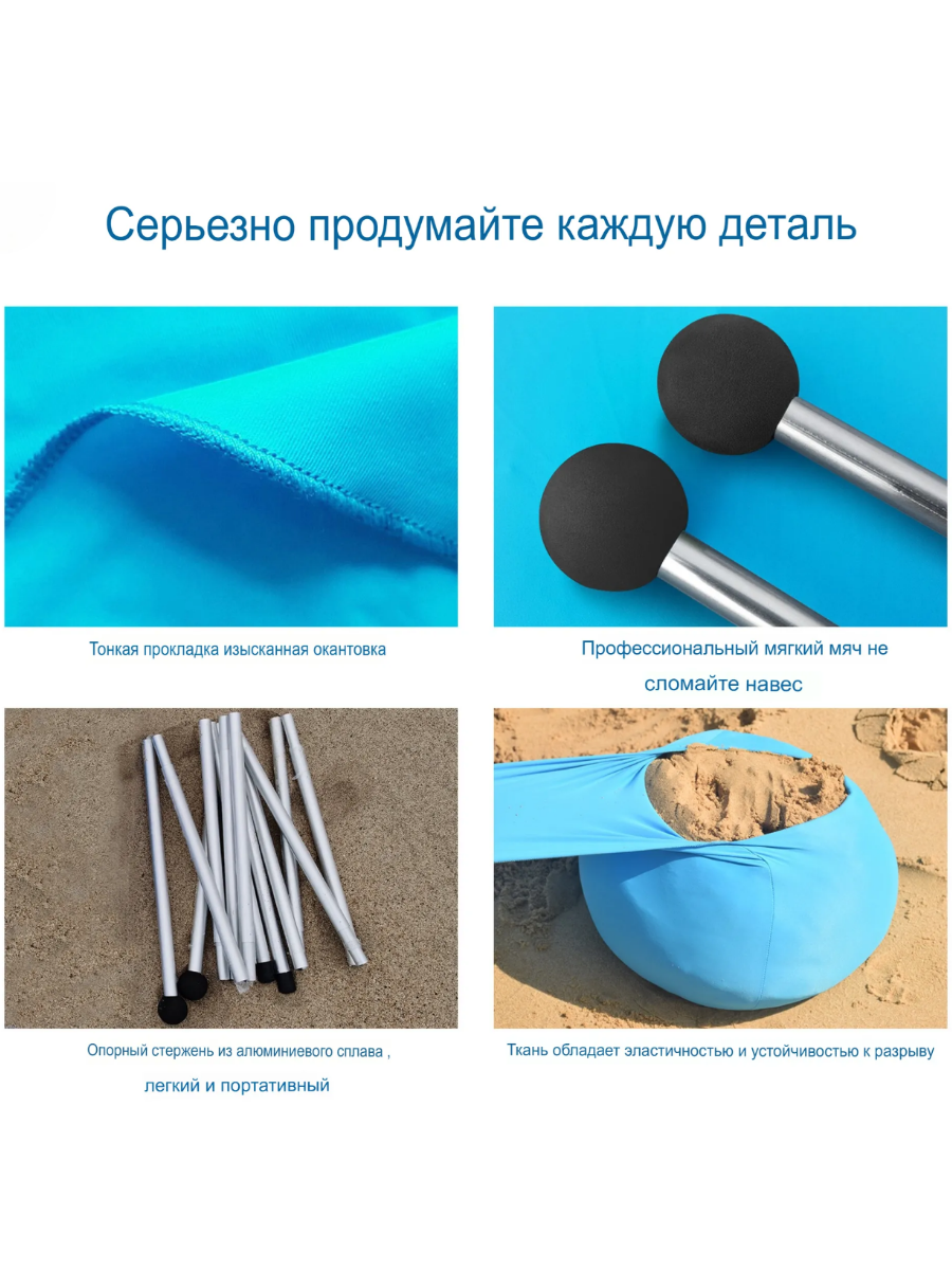 Пляжная палатка / Тент от солнца, 240см, синий, водоотталкивающий, складной, с чехлом, металл