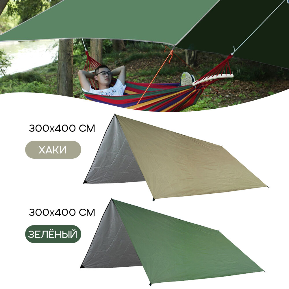 Тент походный туристический садовый водонепроницаемый 3 х 4 м, цвет - зеленый интересное: