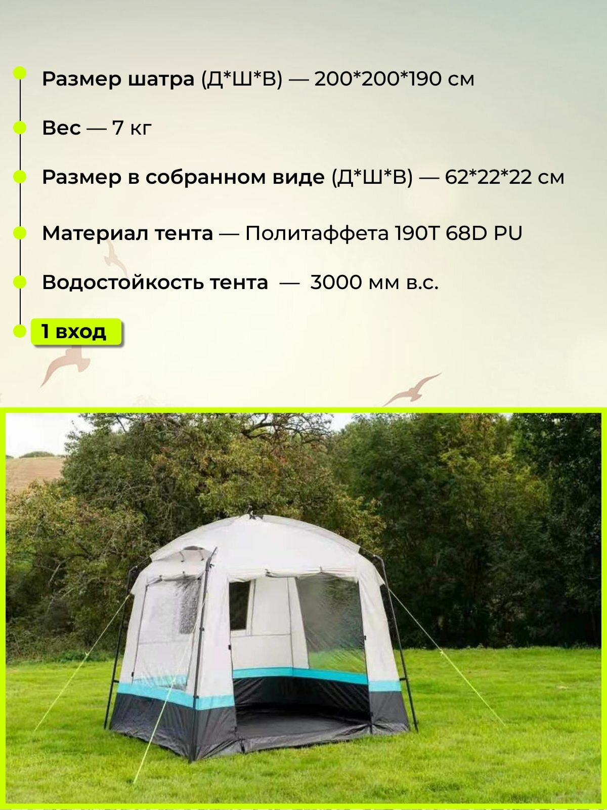 Палатка-кухня, шатер, 4-местная, внешний каркас, полиэстер, высота 190 см, белая интересное: