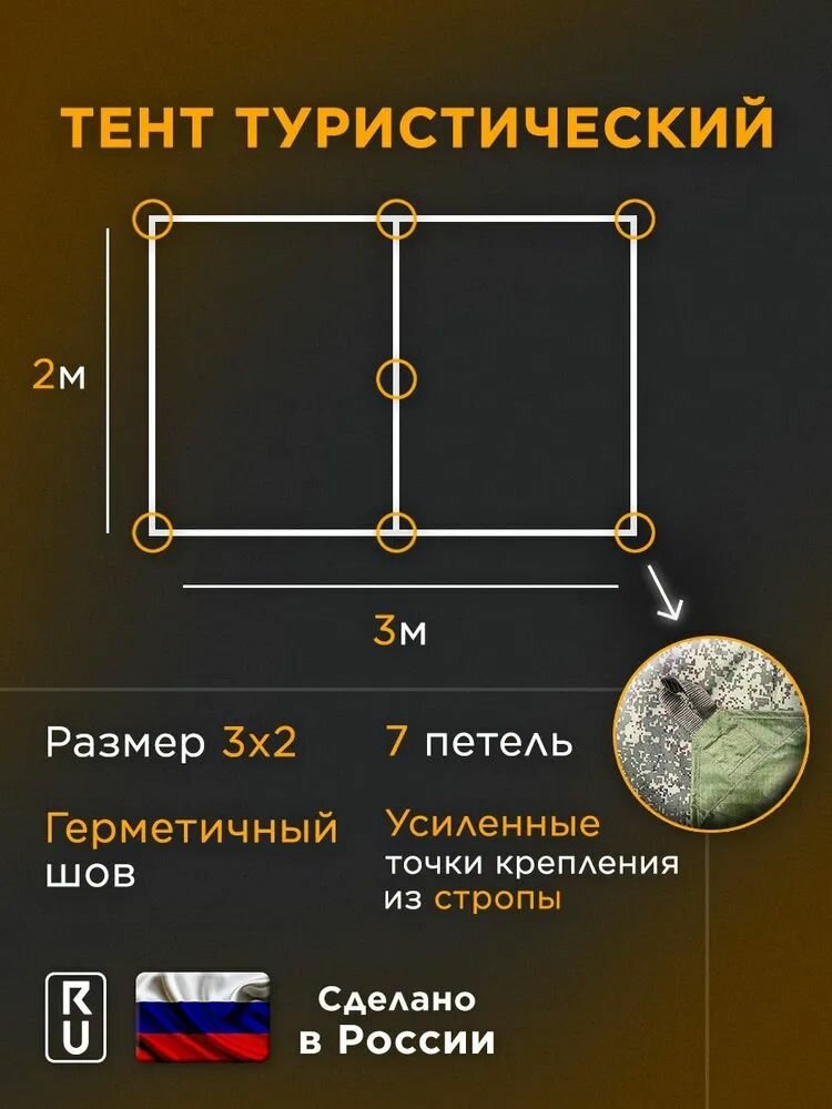 Тент туристический 3Х6 "мультикам " / Полог походный / Навес