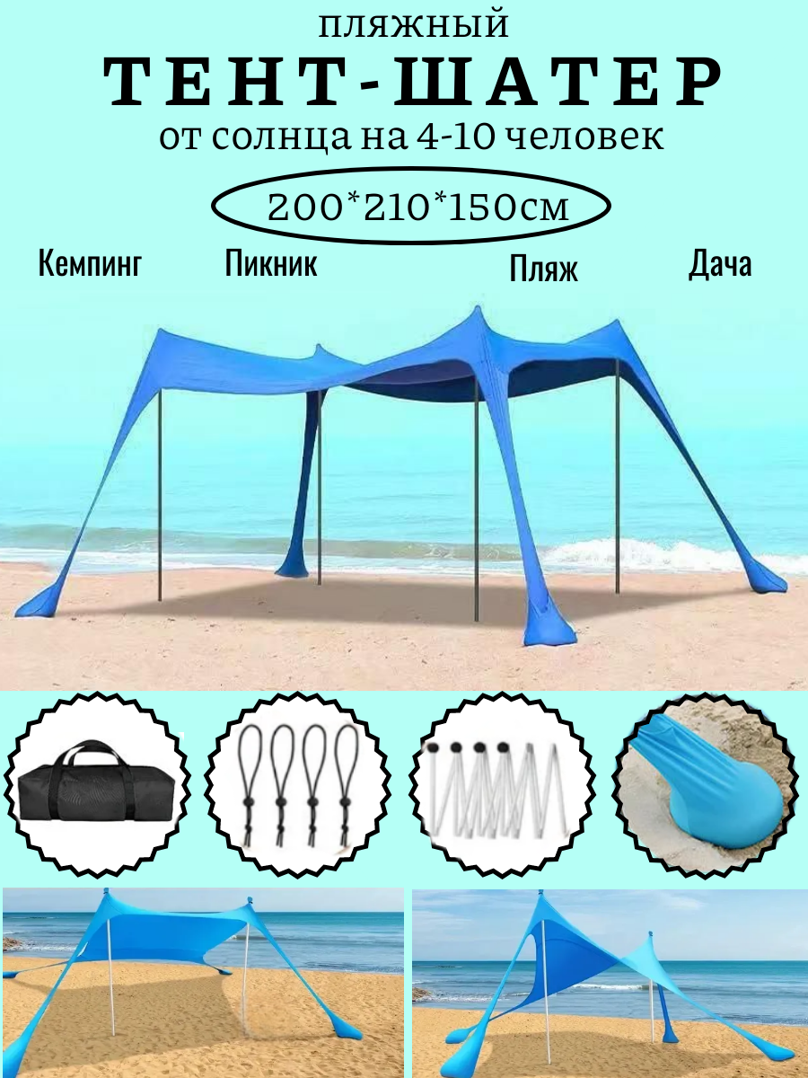 Тент-навес "Кемпинг", полиэстер, 200x210x150см, синий, быстросборный интересное: