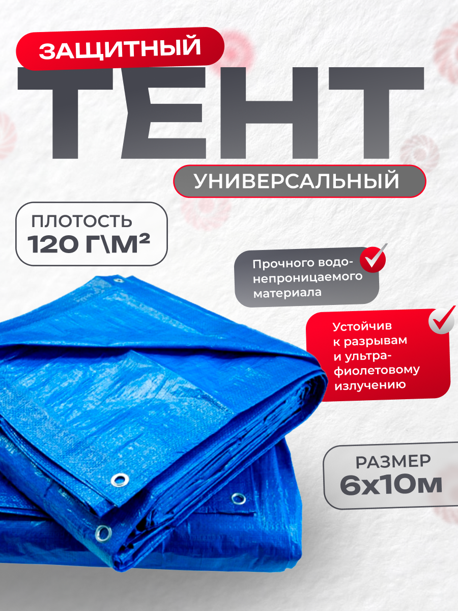 Купить Тент укрывной усиленный с люверсами 6х10 м, 120г/м2, универсальный, туристический