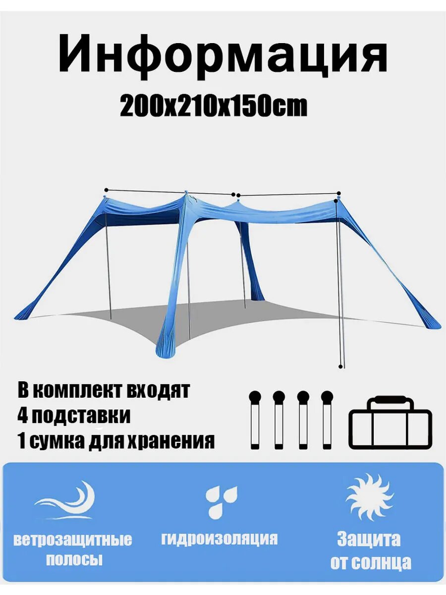Тент Neylon, быстросборный каркас, шатровая форма, водонепроницаемый, синий, 210x200x150 см интересное: