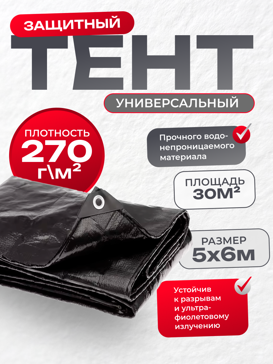 Тент укрывной усиленный с люверсами 5х6м, 270г/м2, универсальный укрывной интересное:
