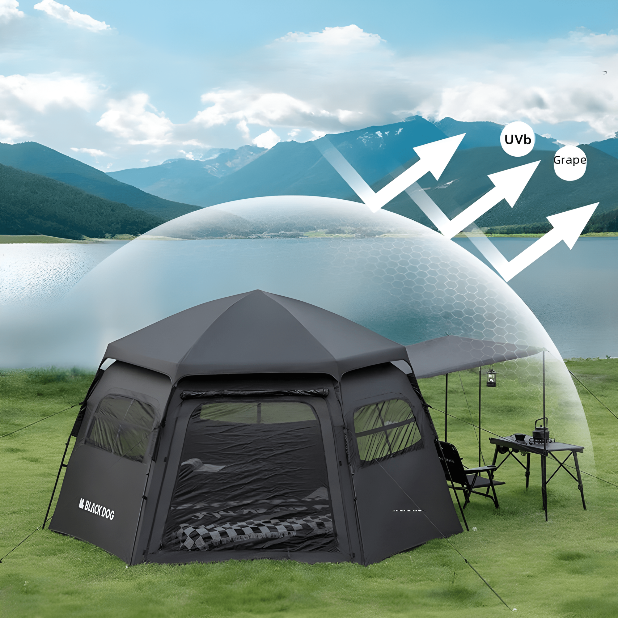 Шатер походной шестиугольный BLACK DOG 350*350*200 см, черный интересное: