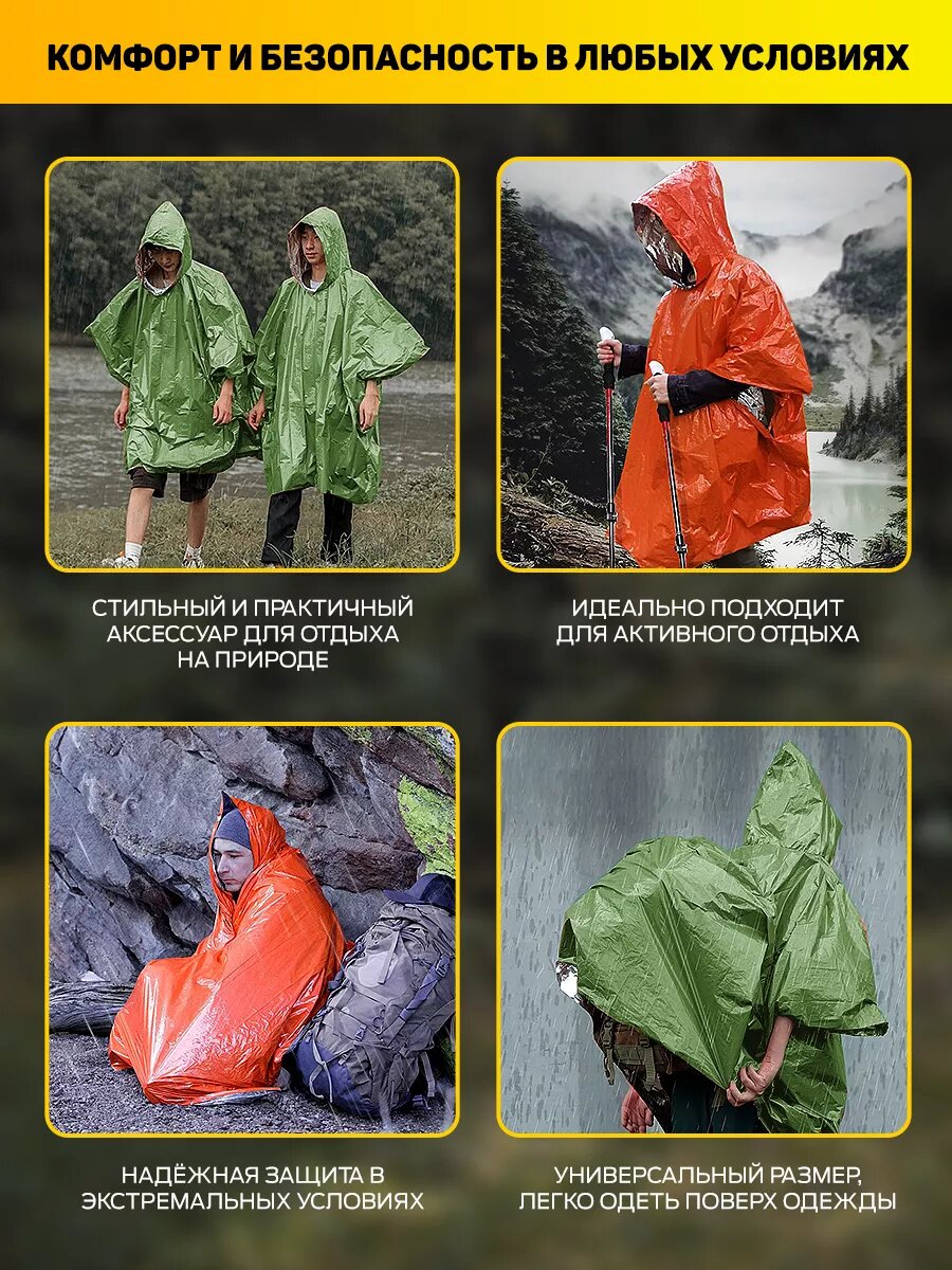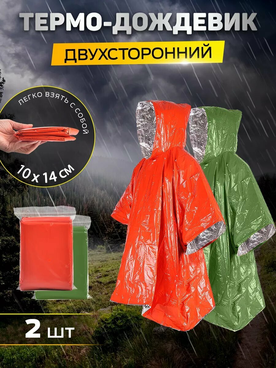 Термо-дождевики САМОВАРЫЧ РФ, пончо, двусторонние, водонепроницаемые, 125x100 см, 2 шт интересное: