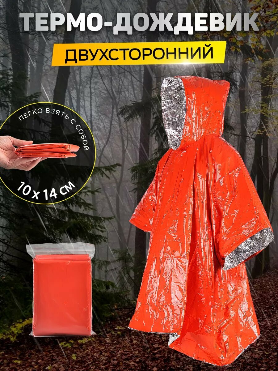 Дождевик САМОВАРЫЧ. РФ, двусторонний, оранжевый, водонепроницаемый, 125x100x125 см интересное: