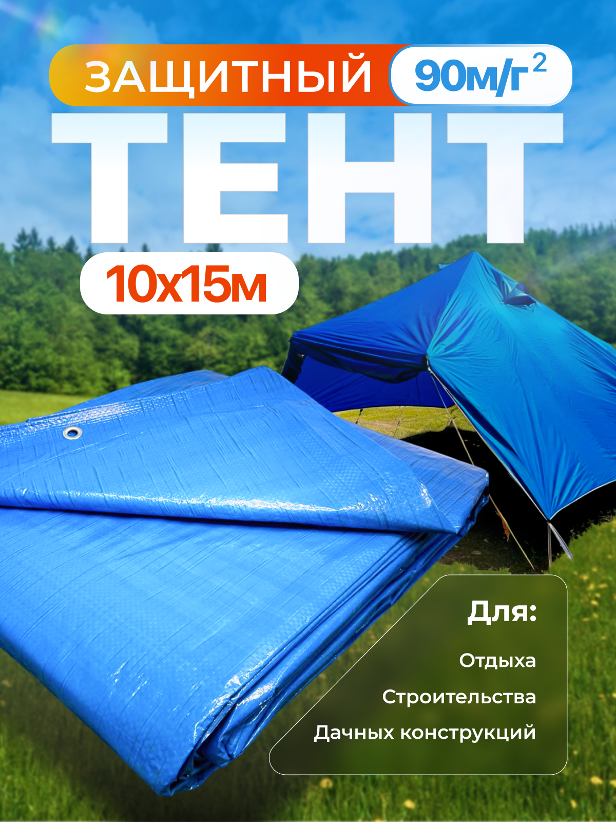 Купить Тент укрывной усиленный с люверсами 10х15 м, 90г/м2