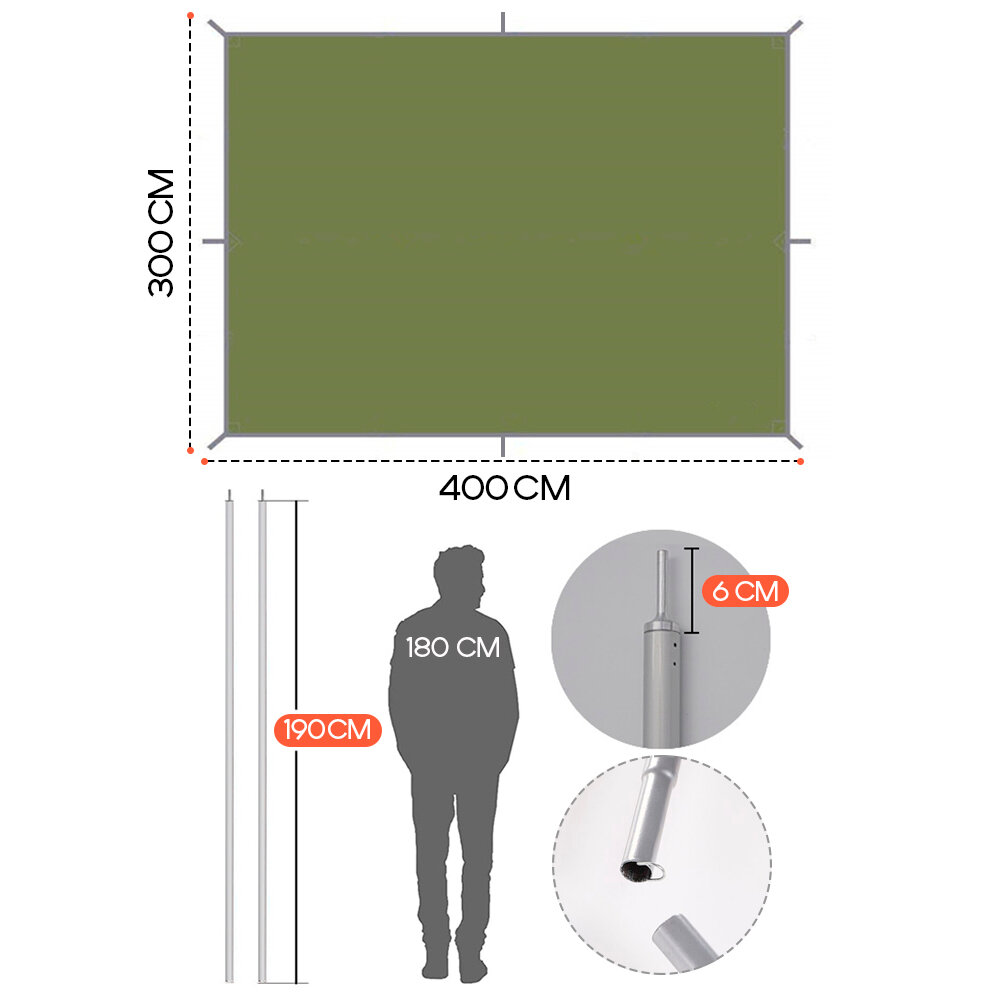 Купить Тент навес со стойками, походный шатер, туристический, садовый, укрывной 300х400 зеленый
