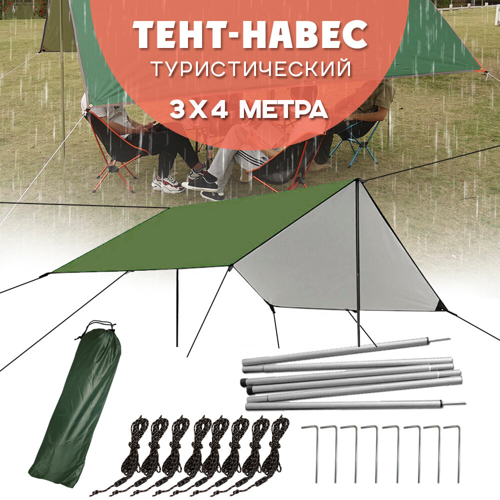 Тент навес со стойками, походный шатер, туристический, садовый, укрывной 300х400 зеленый интересное: