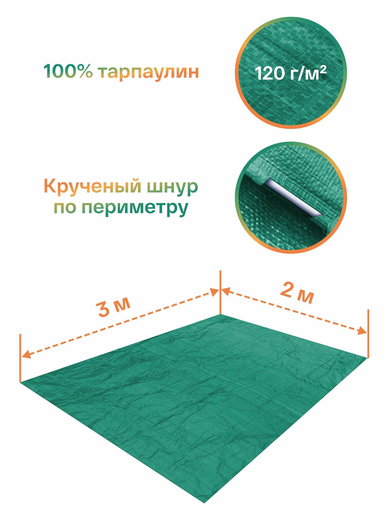 Тент укрывной 3х4 защитный 120гр/м2, туристический тарпаулин с люверсами, полог для садовых качелей, бассейна и автомобиля