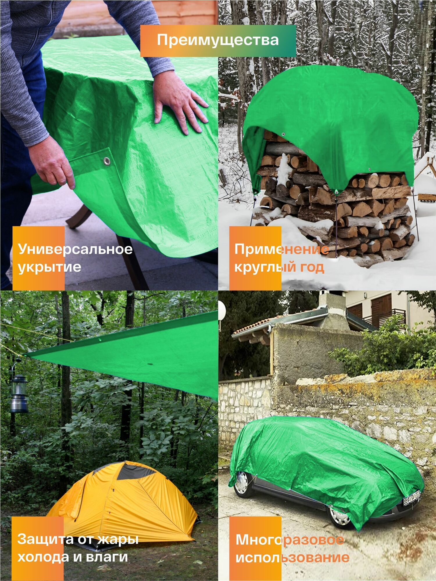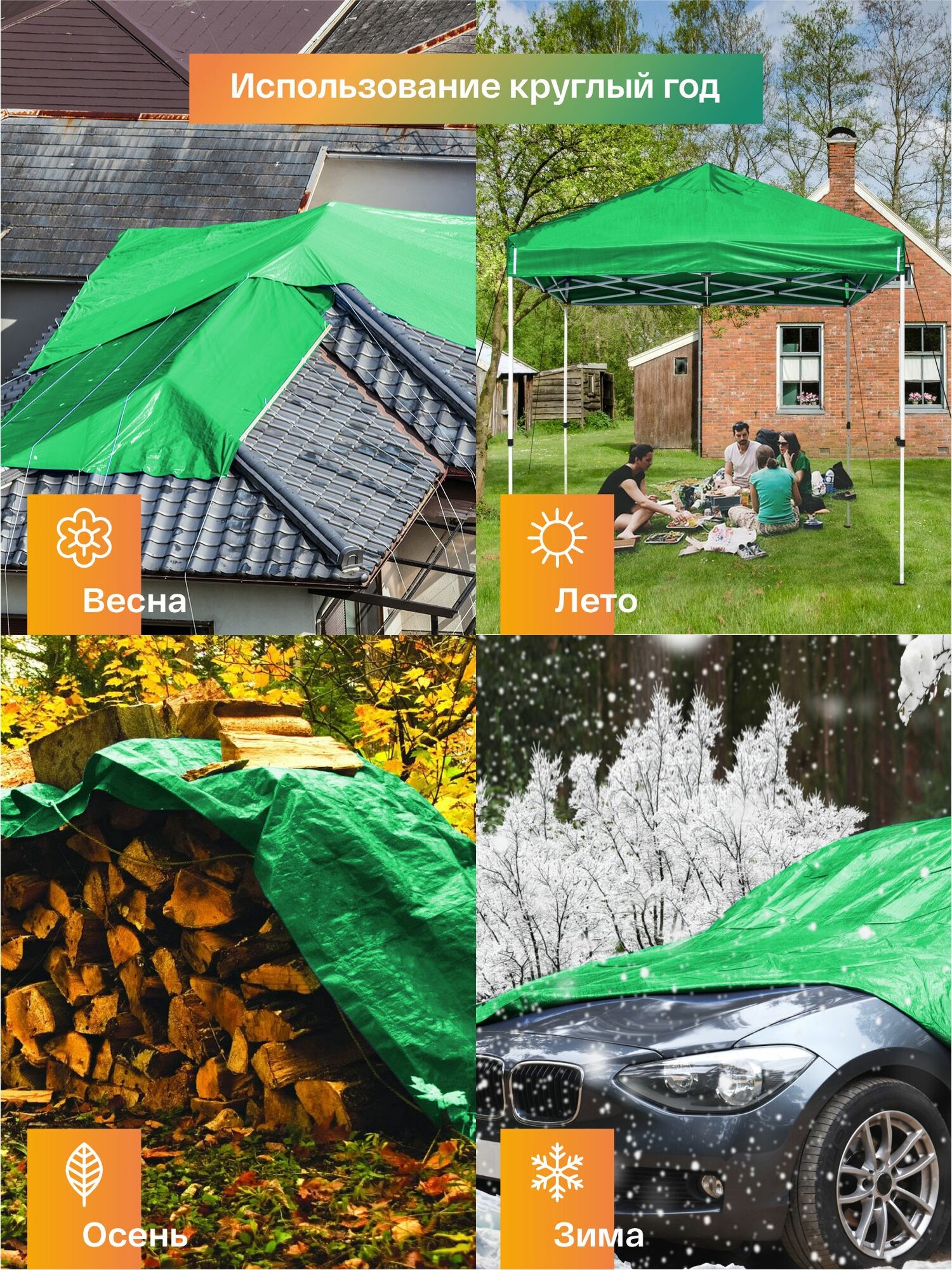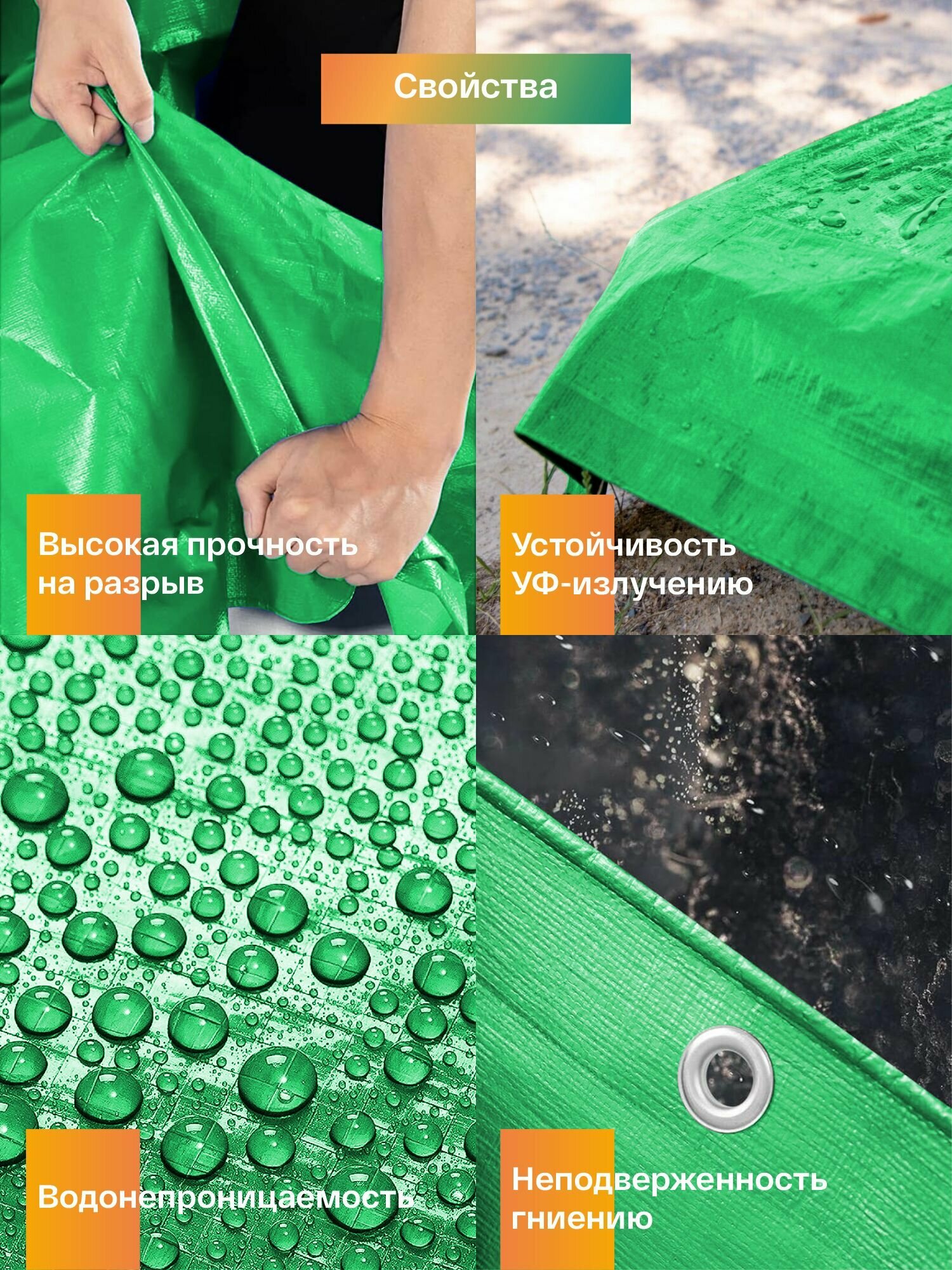 Тент укрывной 4х8 защитный 120гр/м2, туристический тарпаулин с люверсами, полог для садовых качелей, бассейна и автомобиля