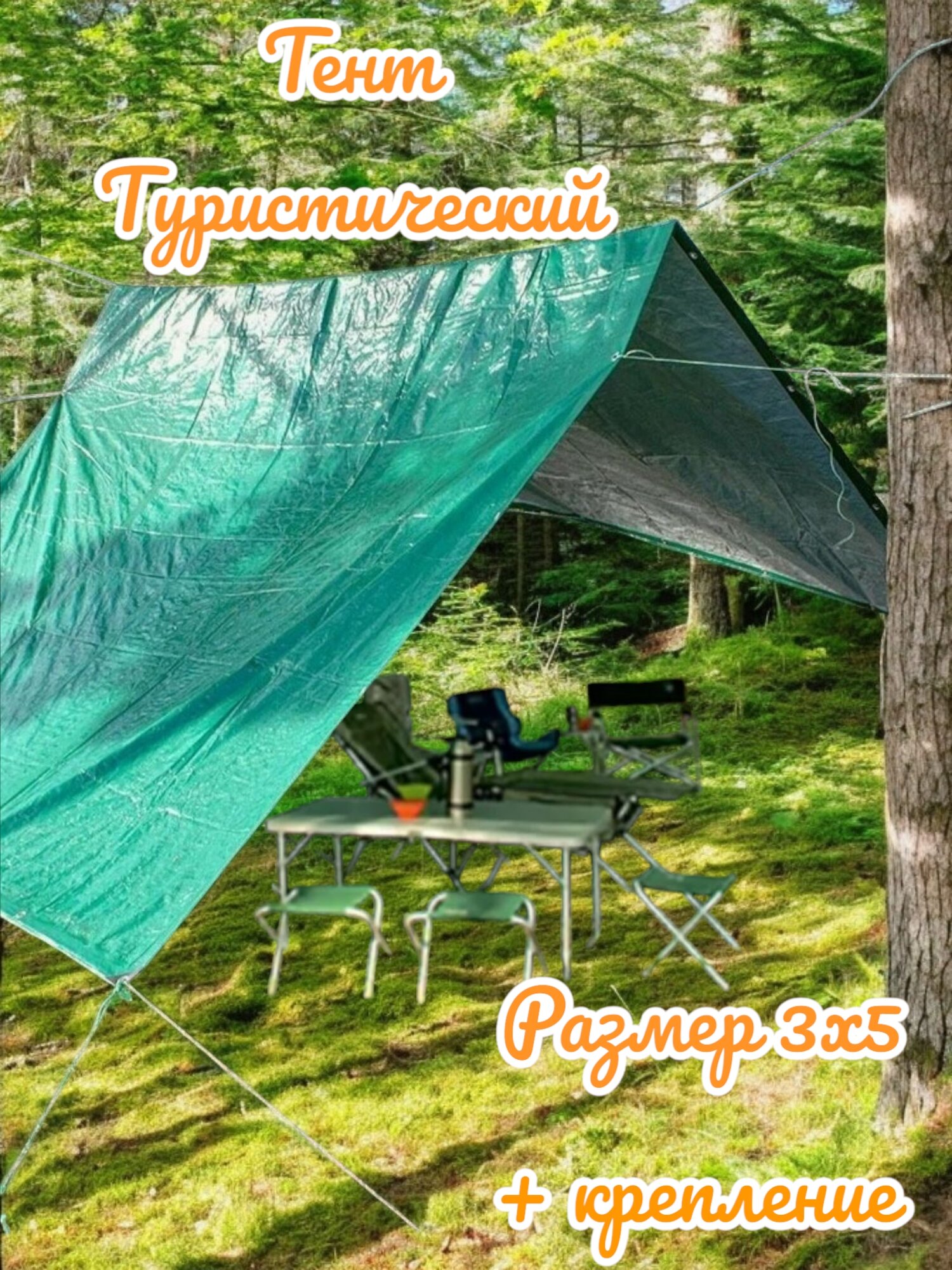 Тент туристический, тарпаулин, 4x5 м, прямоугольный, зеленый, УФ-защита