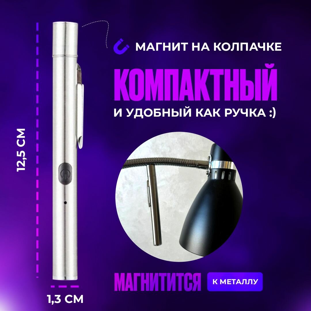 Ультрафиолетовый фонарик с магнитом и USB, фонарик для маникюра или проверки, серый интересное: