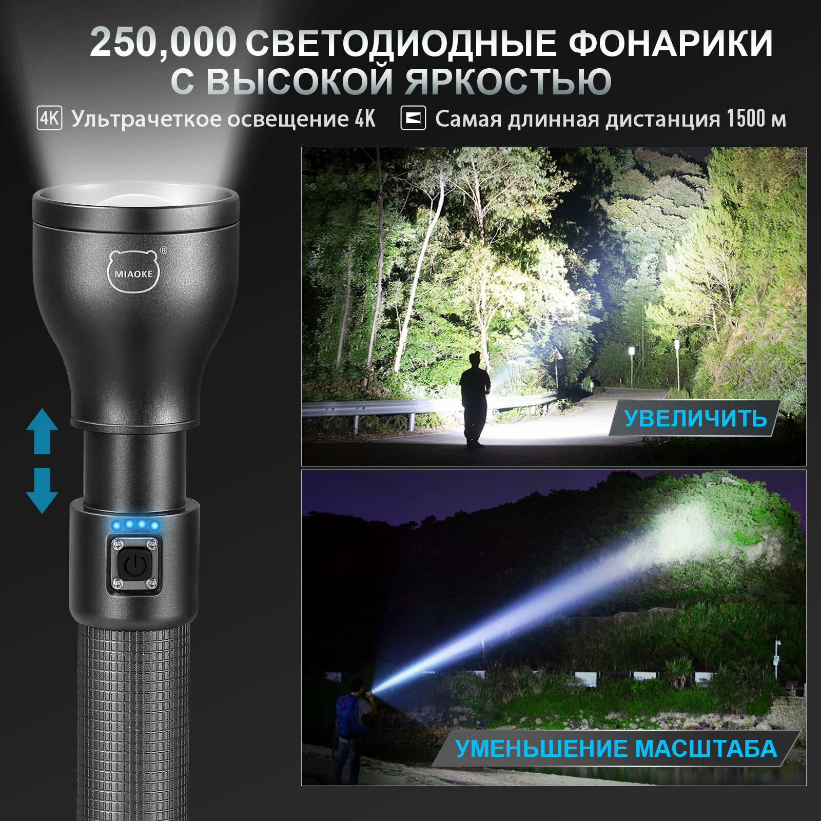 250000 лм фонарик аккумуляторный ручной, С разбиватель стекол,зашита IPX7, 5200. MAЧ батарея,Корпус из сплава, интересное: