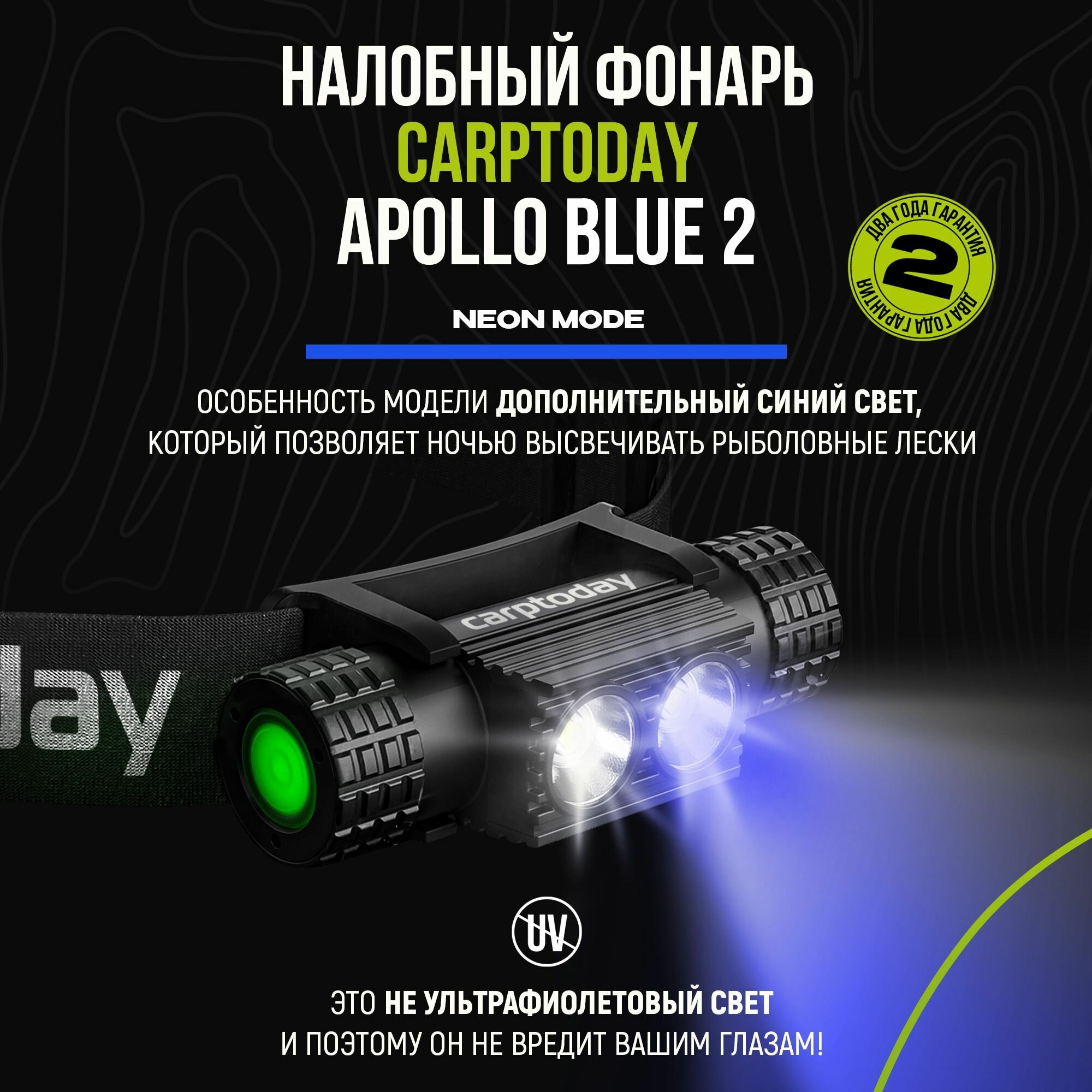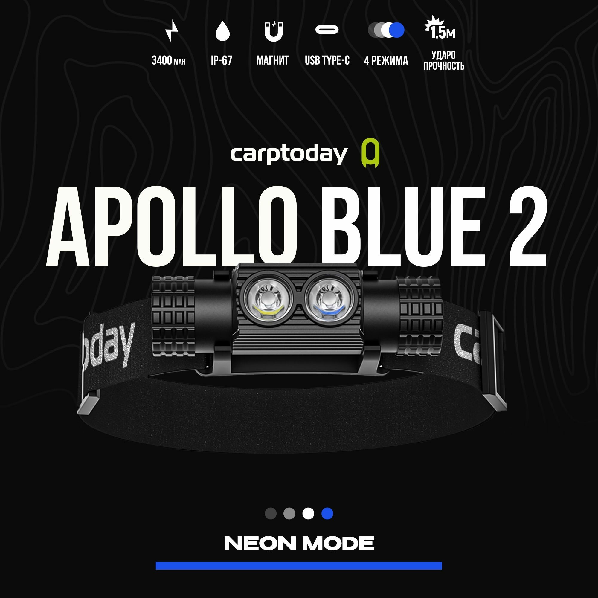 Налобный фонарь Carptoday Apollo Blue 2 с функцией подсвечивания лески синим светом интересное:
