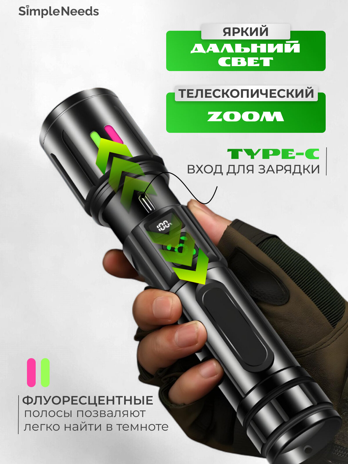 Фонарик ручной, тактический, светодиодный, черный, USB-зарядный, 2000lm интересное: