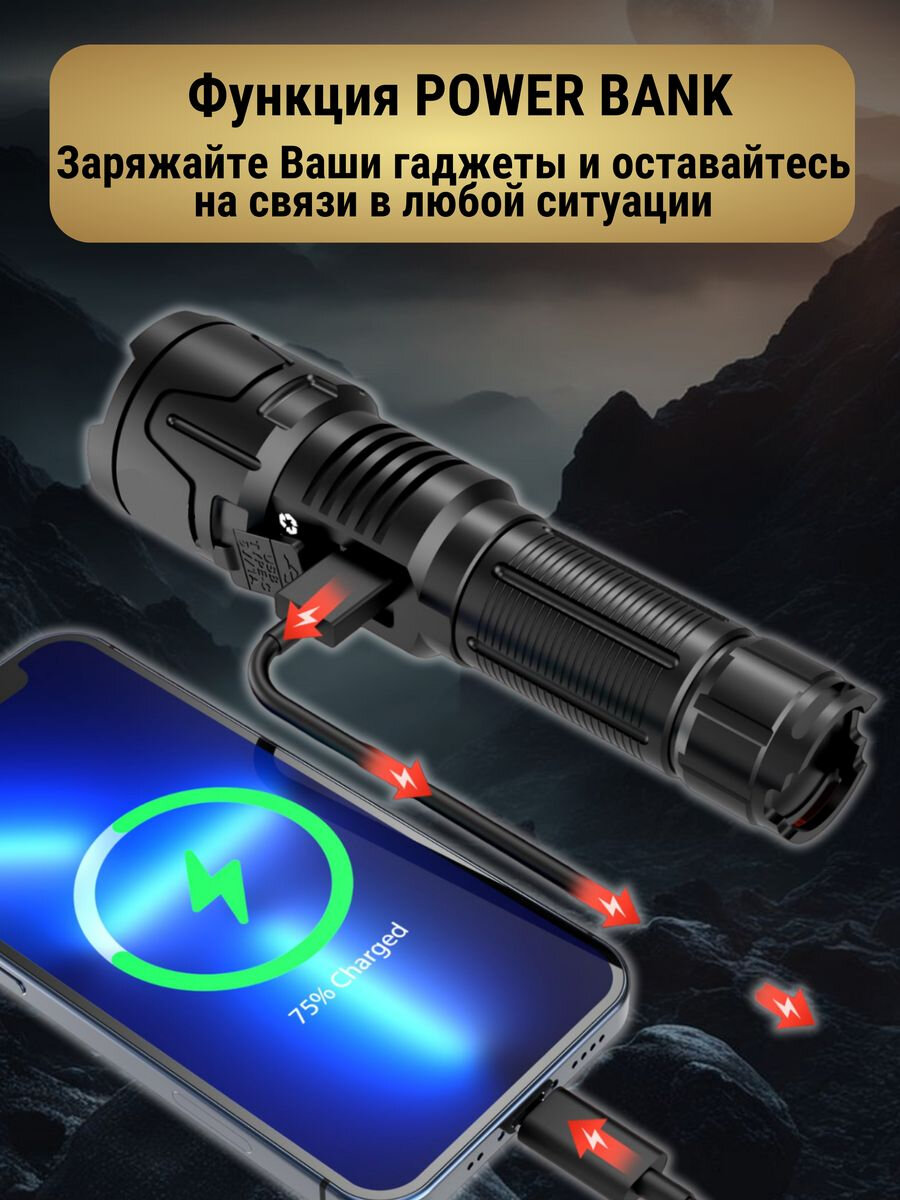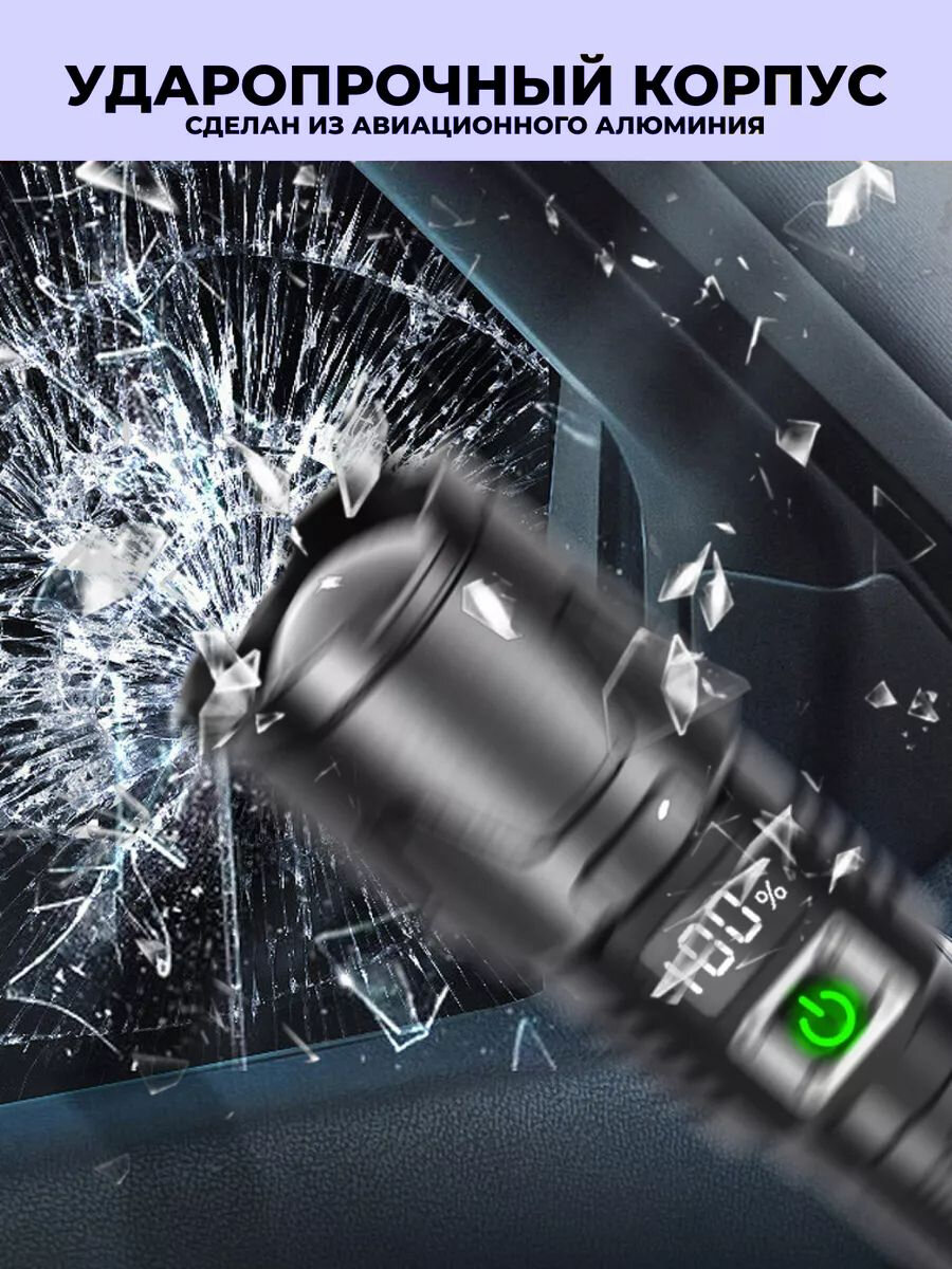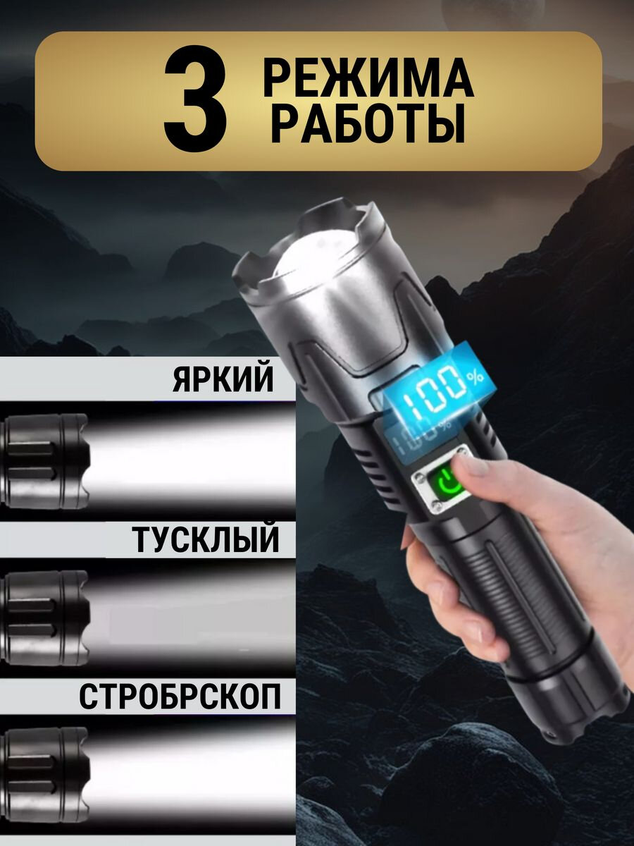 Фонарь аккумуляторный с индикацией, светодиодный, Фонарик аккумуляторный мощный, Фонарик тактический ручной