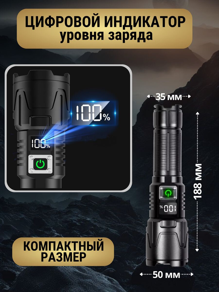 Фонарь аккумуляторный с LED экраном, светодиодный, Фонарик аккумуляторный мощный, Фонарик тактический ручной