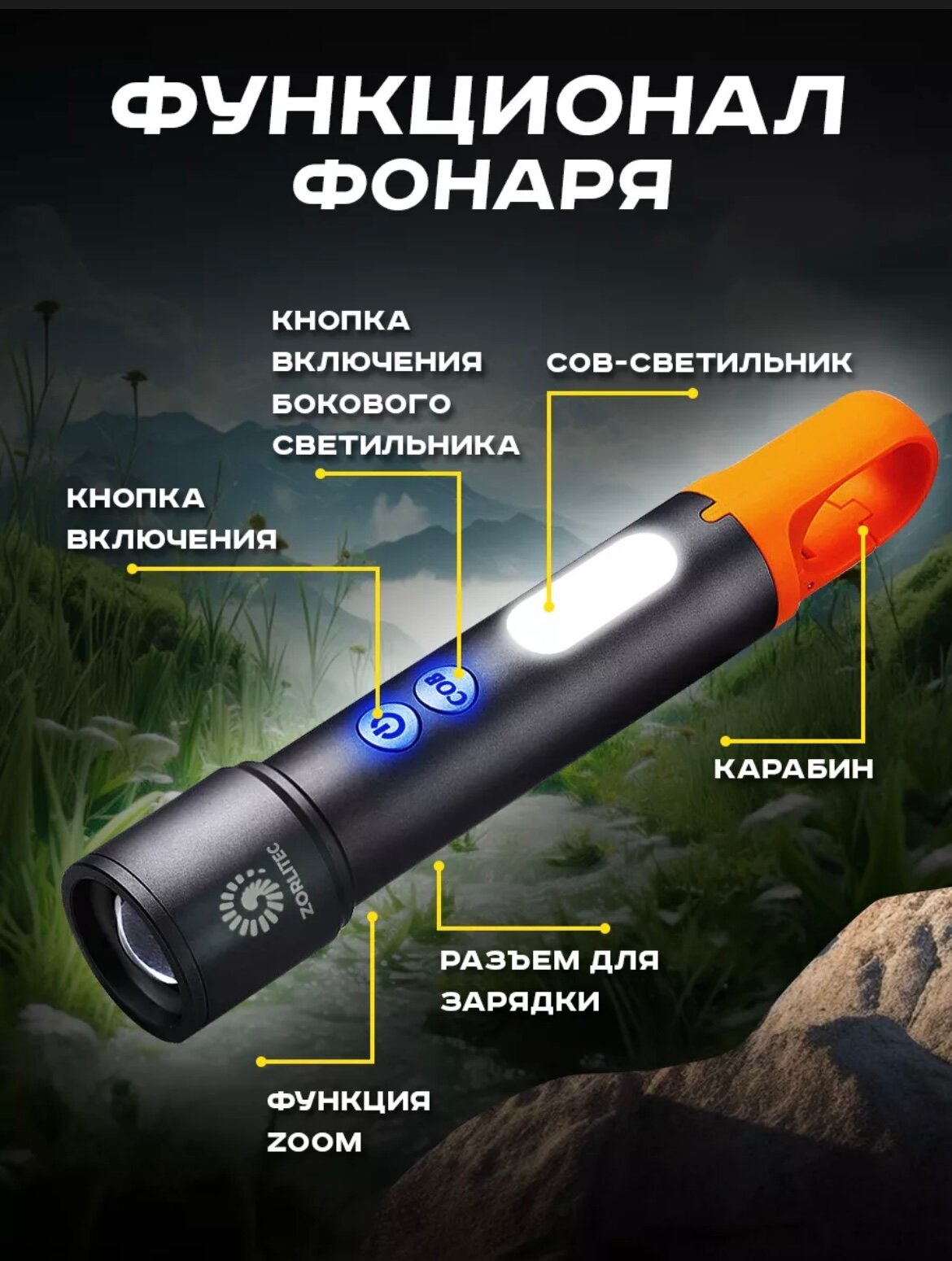 Фонарь ручной аккумуляторный, светодиодный, перезаряжаемый, для спорта, туризма, охоты и рыбалки нового поколения