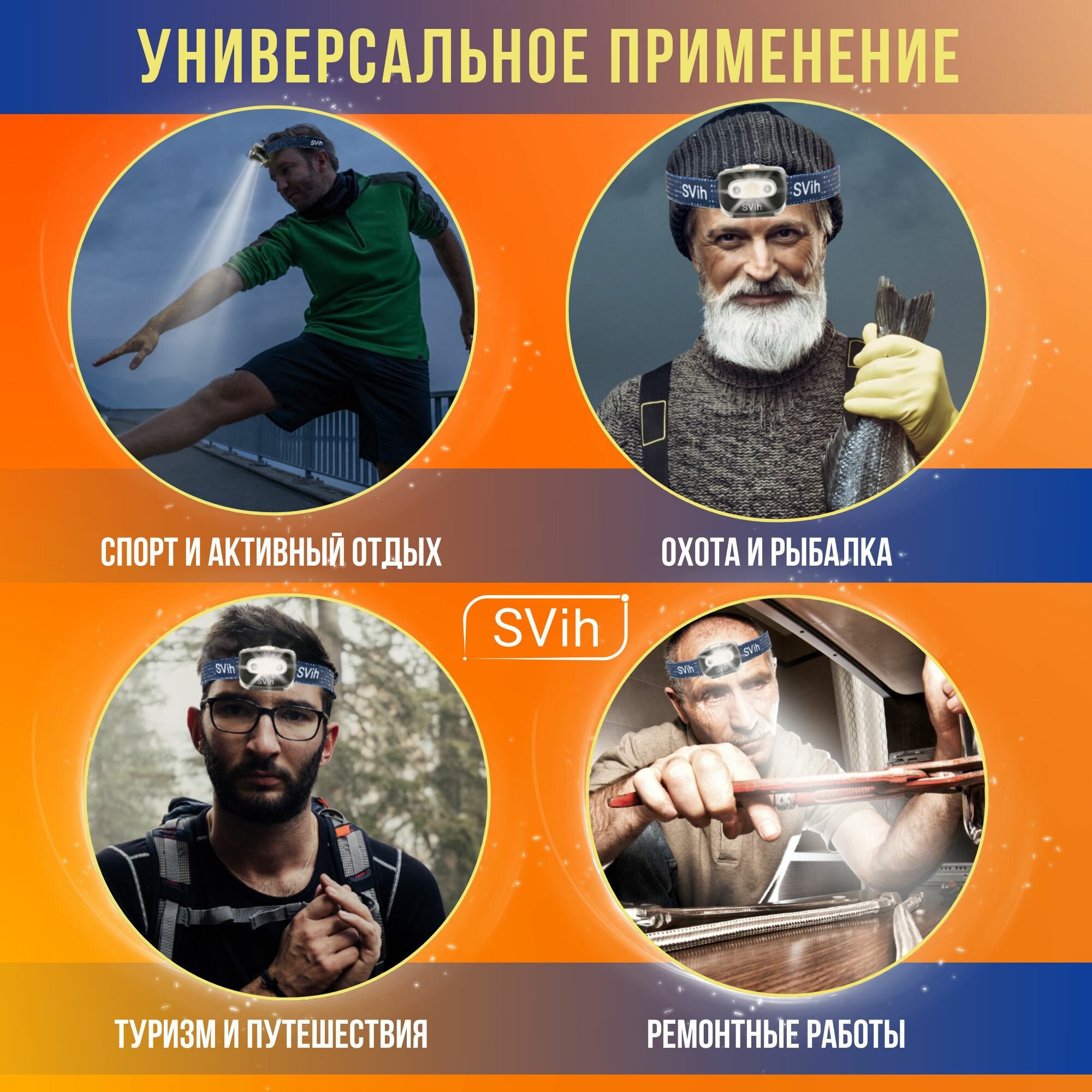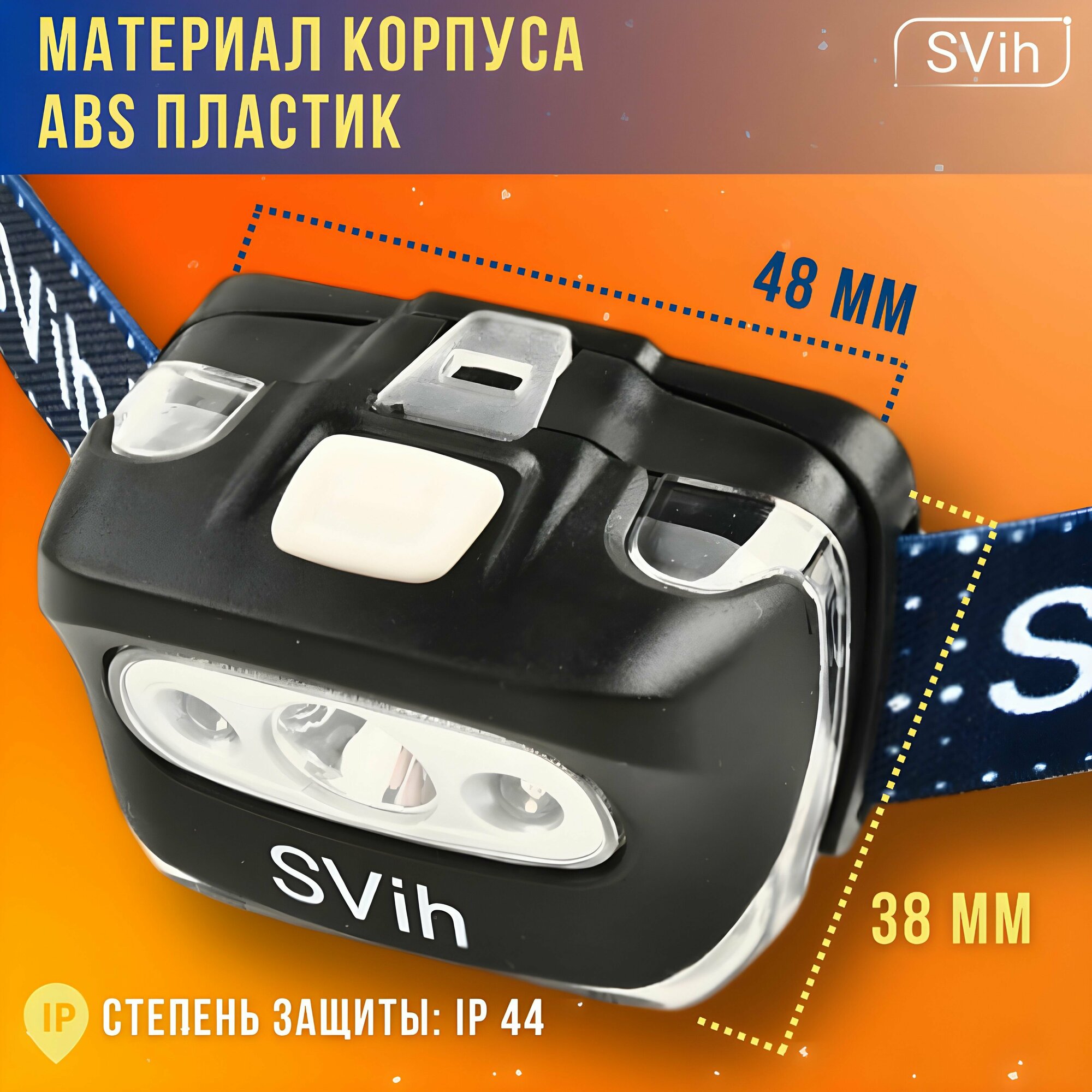 Налобный Фонарь SVIH, батарейки, дальность освещения 150м, 200лм интересное: