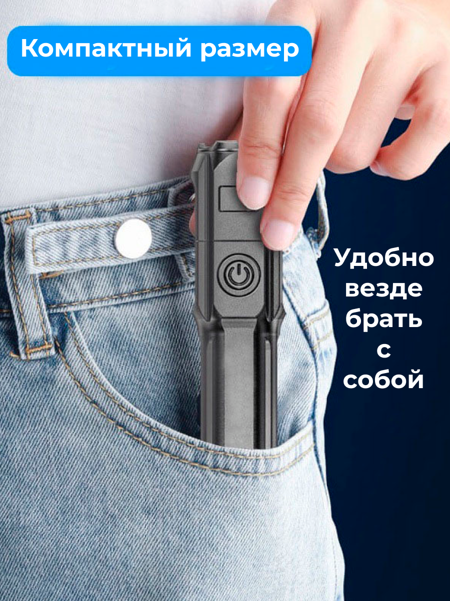Фонарь светодиодный аккумуляторный ручной, карманный фонарик интересное:
