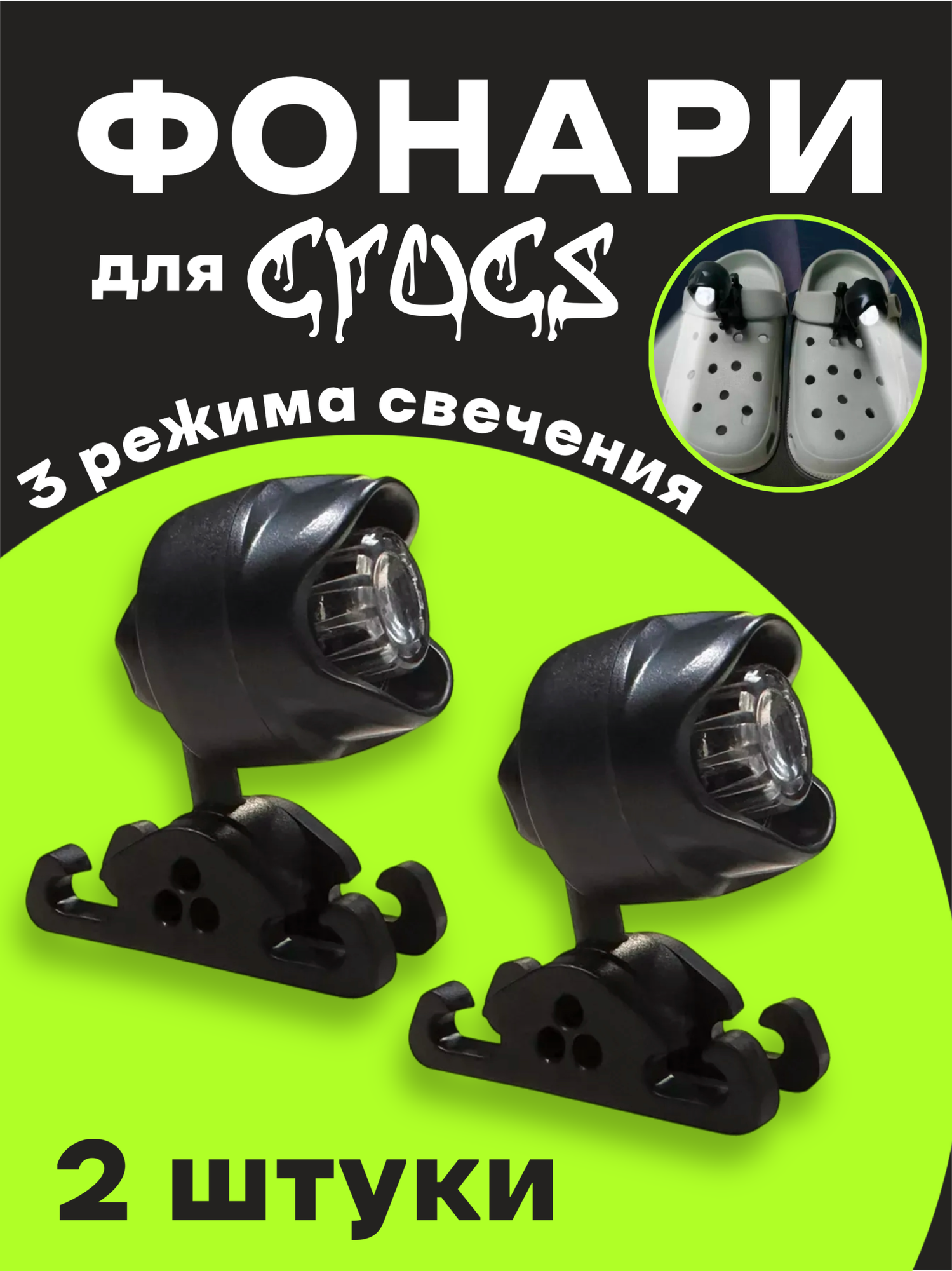 Фонари Jibbitz для обуви, фонарики для кроксов, кроссовок, черные 2 шт интересное:
