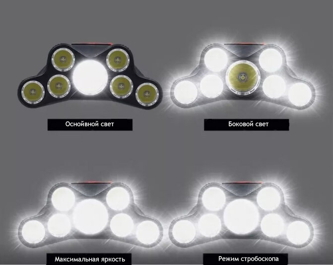 Фонарь налобный яркий мощный светодиодный для рыбалки, охоты туризма и отдыха 7 LED HEAD LIGHT интересное: