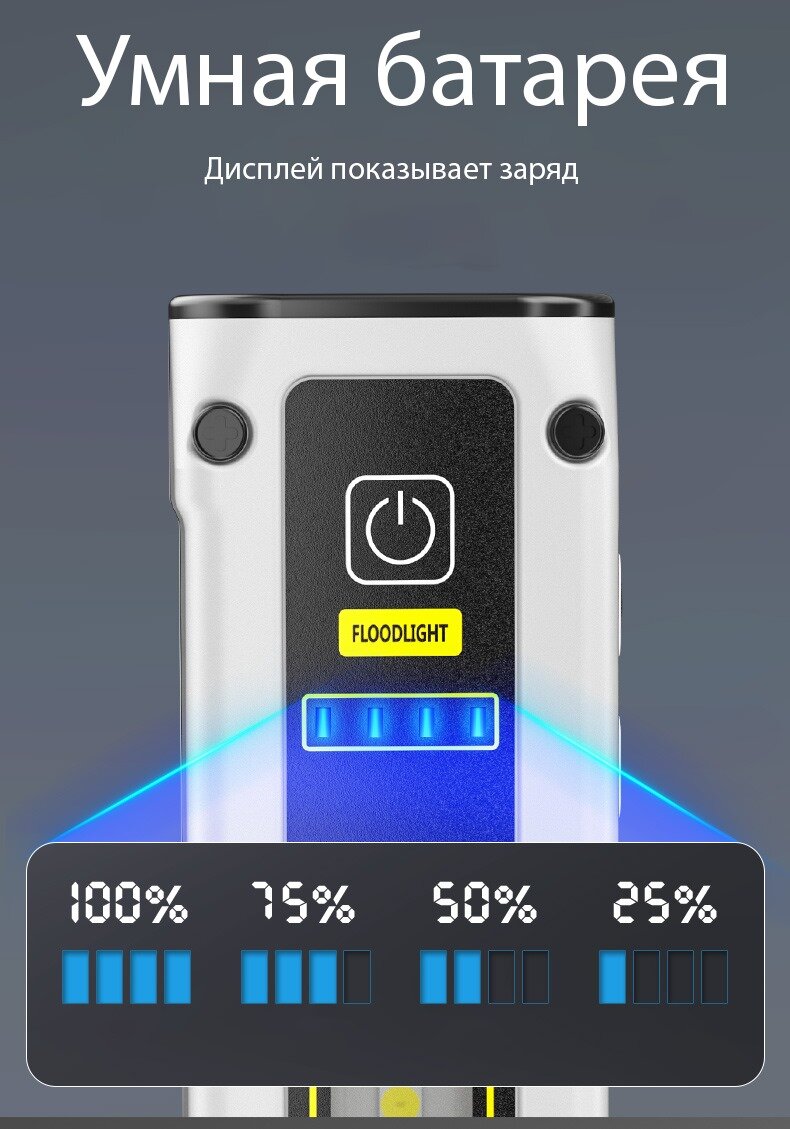 Светодиодный фонарь прожекторный, аккумуляторный многофункциональный IP54 15W