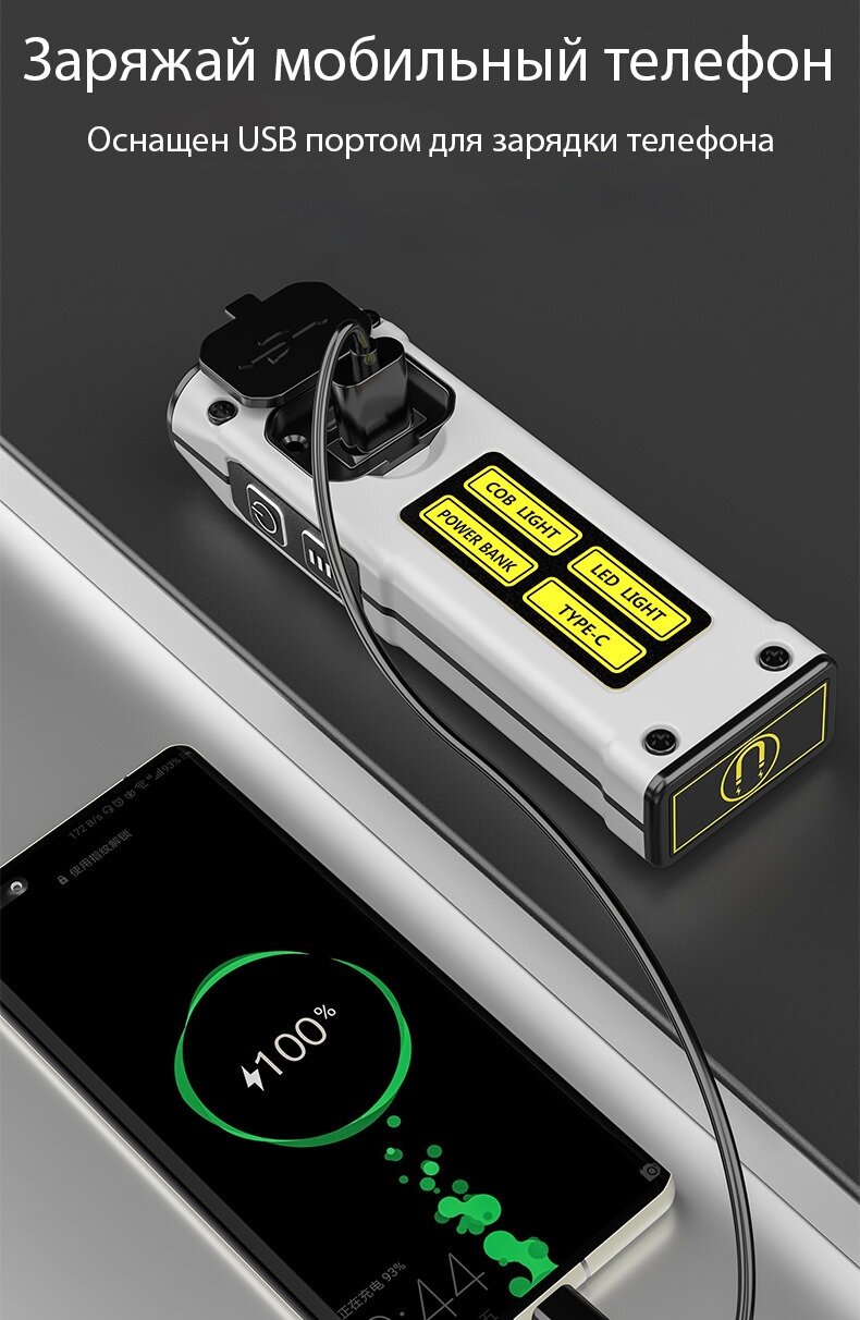 Фонарь ручной аккумуляторный черный с влагозащитой, ударопрочный интересное: