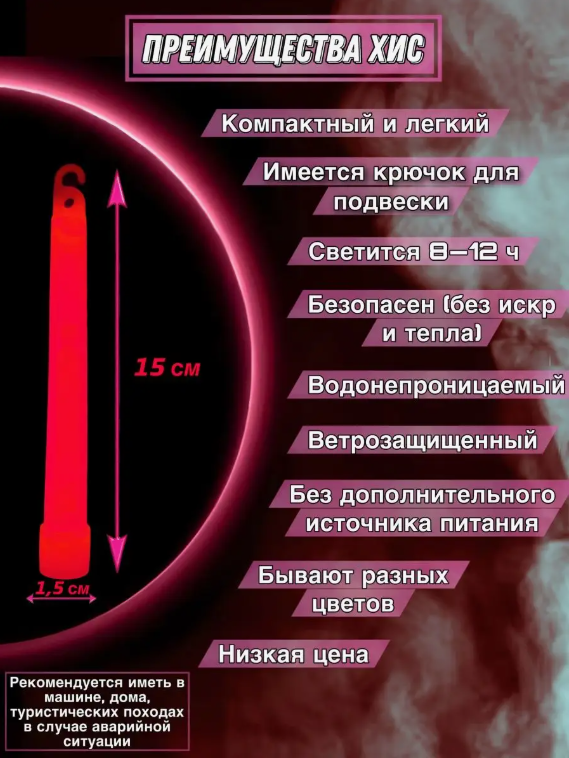 Химический источник света "ХИС", КРАСНЫЙ, влагозащитный, 10 штук интересное: