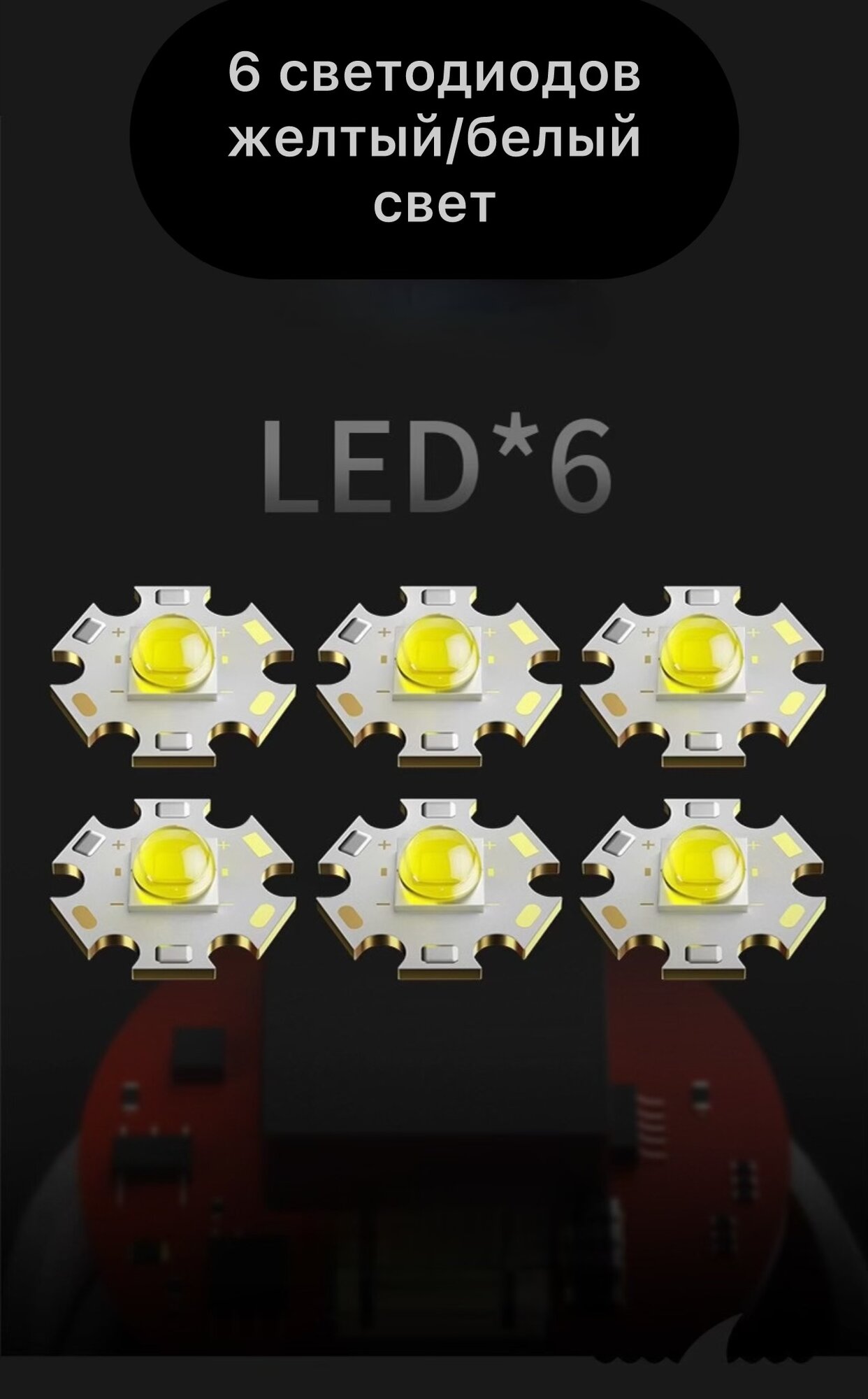 Фонарь аккумуляторный, 300 лм, с USB-питанием, 6 светодиодов, дальность 200 м интересное: