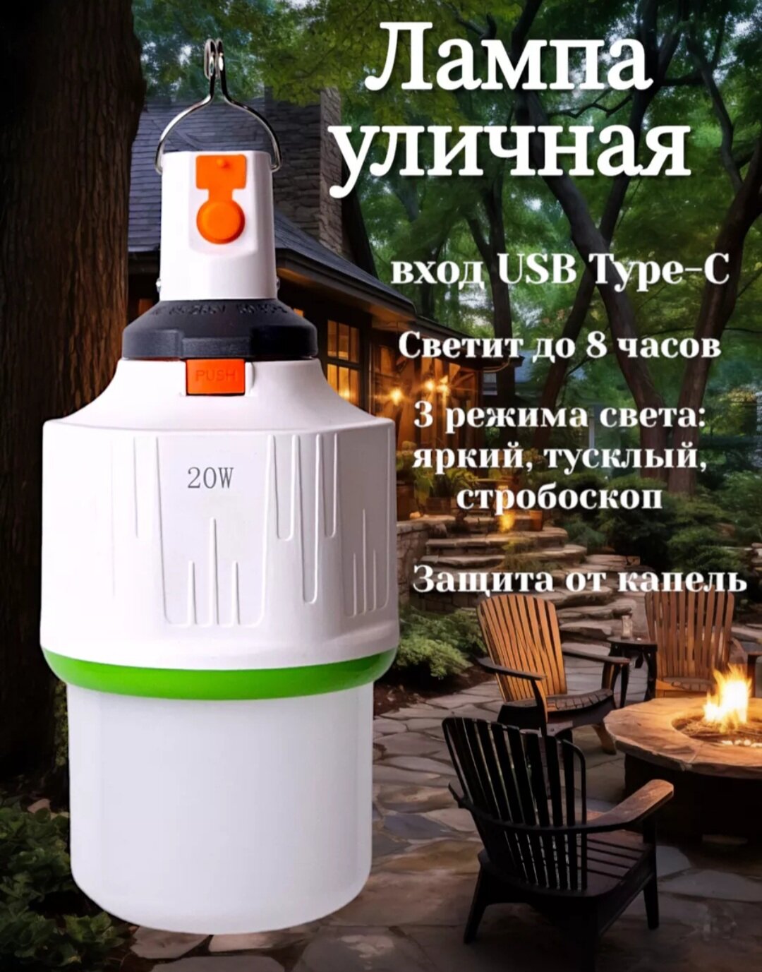 Фонарь аккумуляторный, подвесной для туризма и похода. Кемпинговая туристическая лампа 20w интересное: