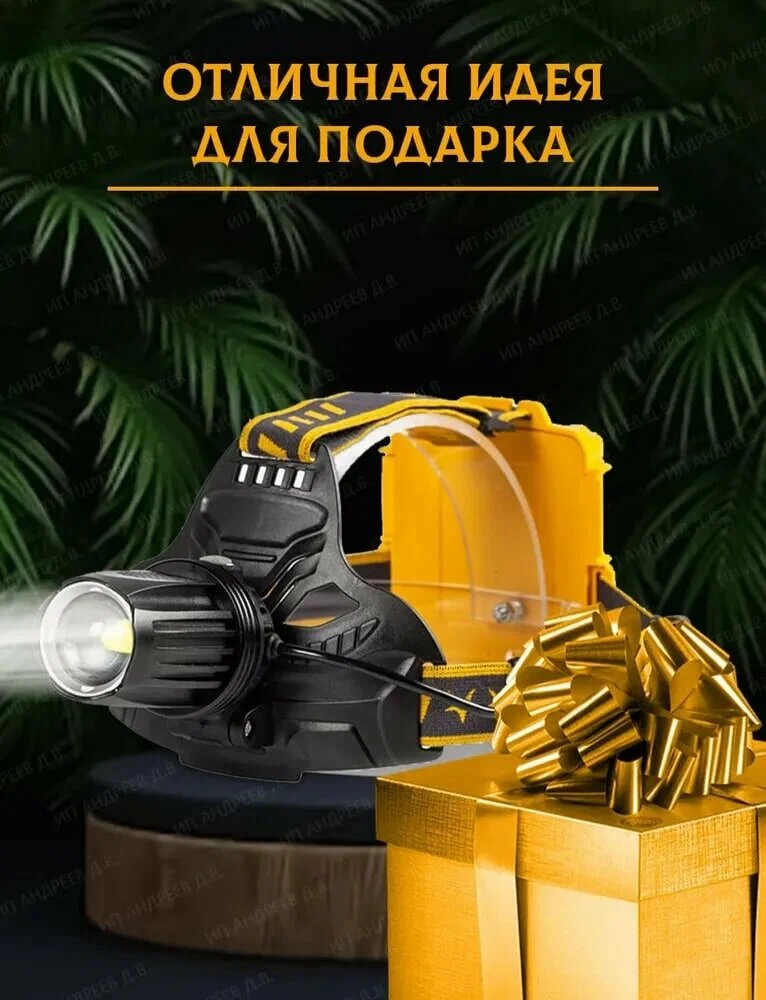 Аккумуляторный налобный фонарь 643. P90 Сверхмощная линза 4 режима 200Вт Для охоты, рыбалки, прогулки, работы интересное: