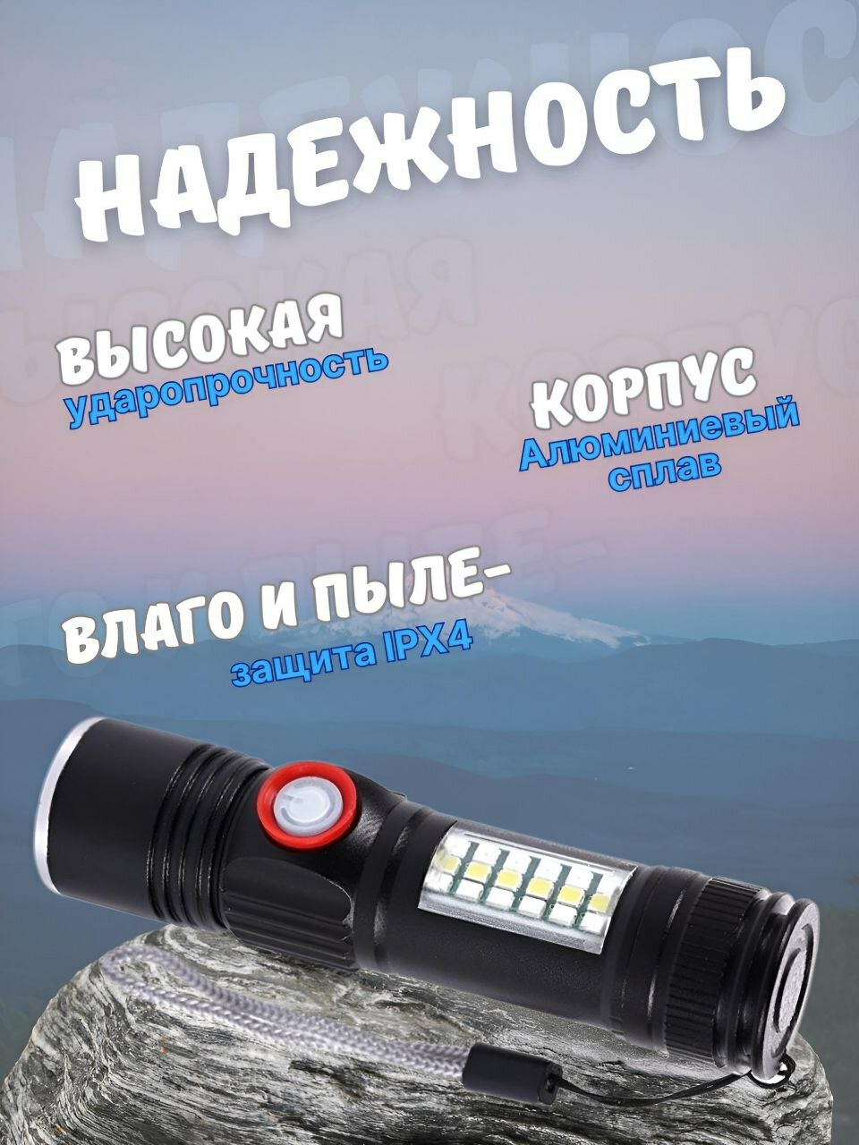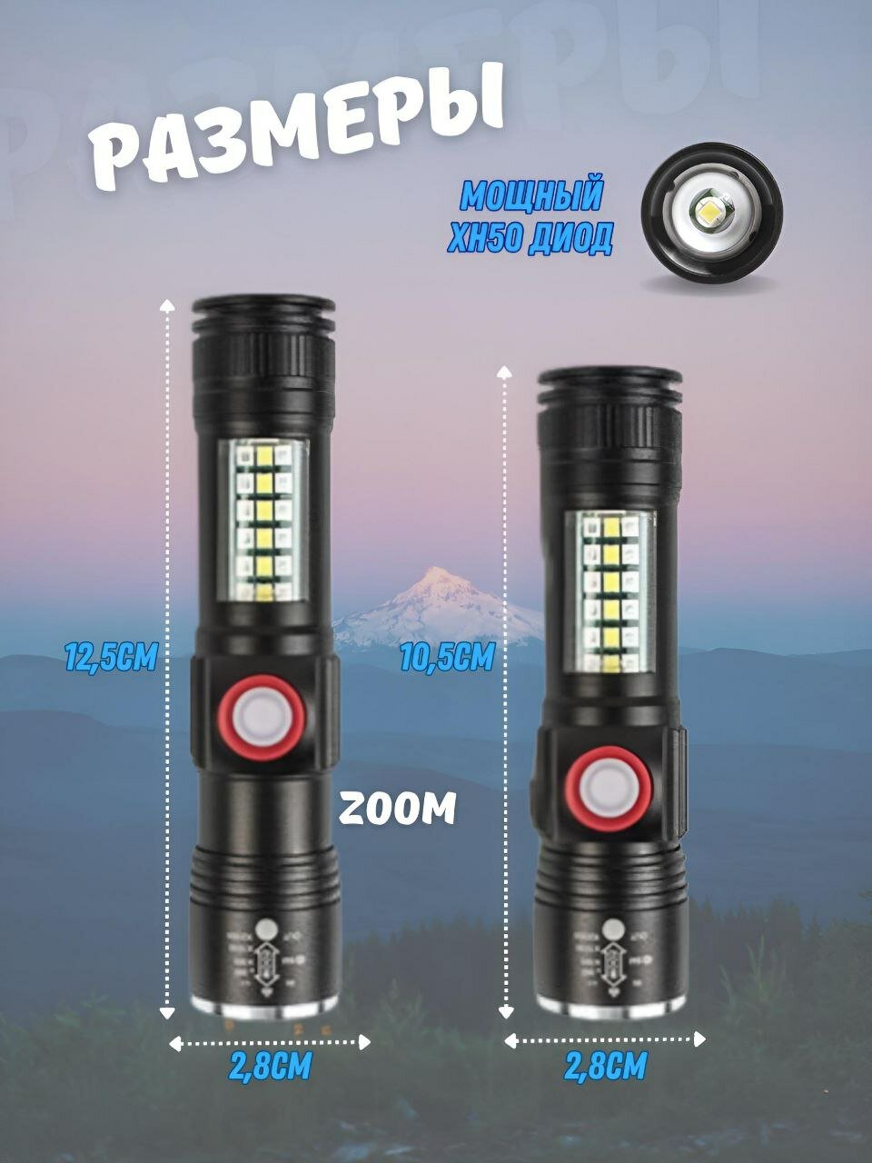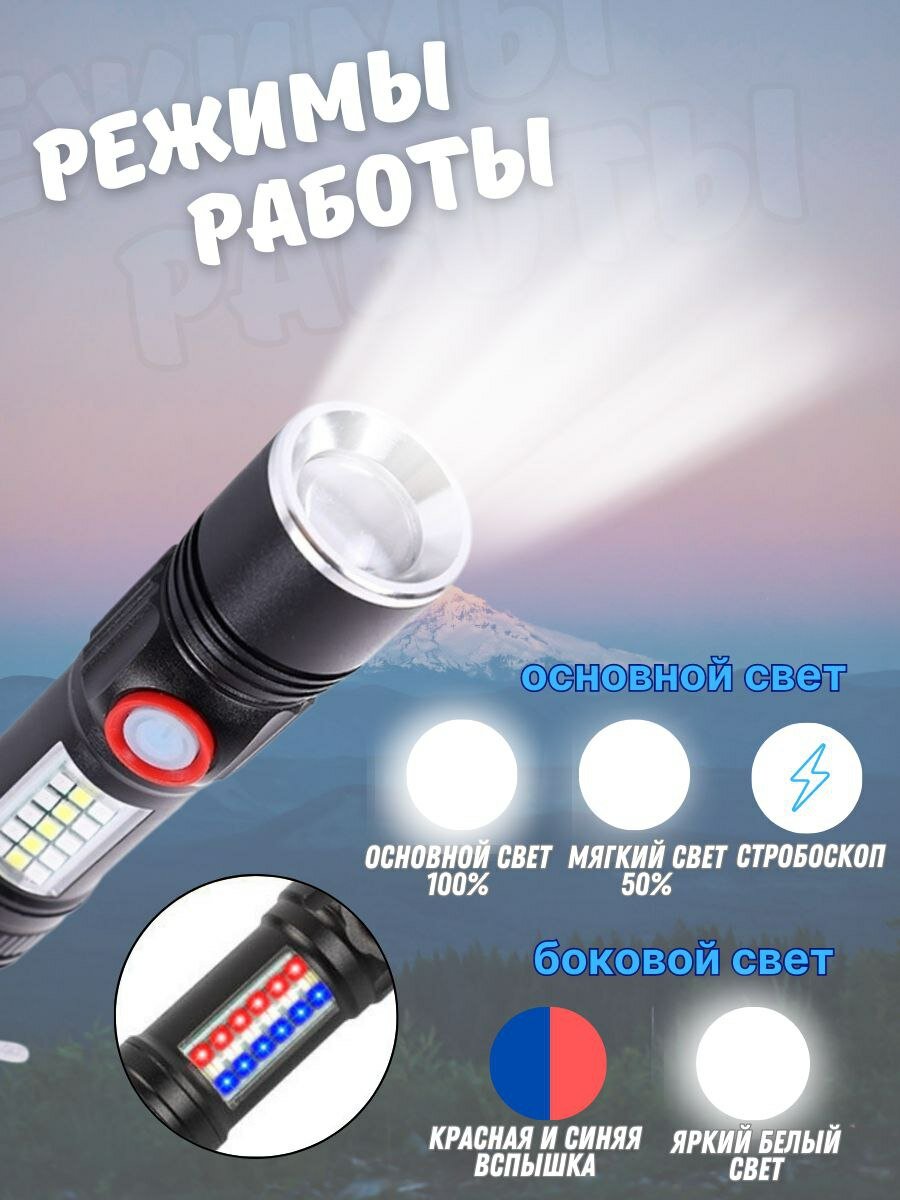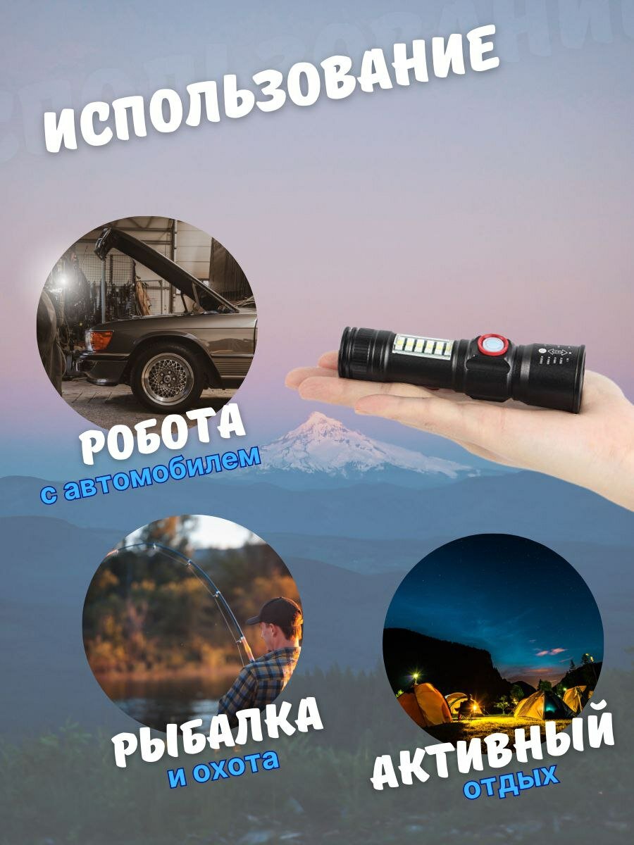 Фонарь ручной спортивный USB с аккумулятором , фонарь прожектор с боковой COB панелью и аварийным режимом интересное: