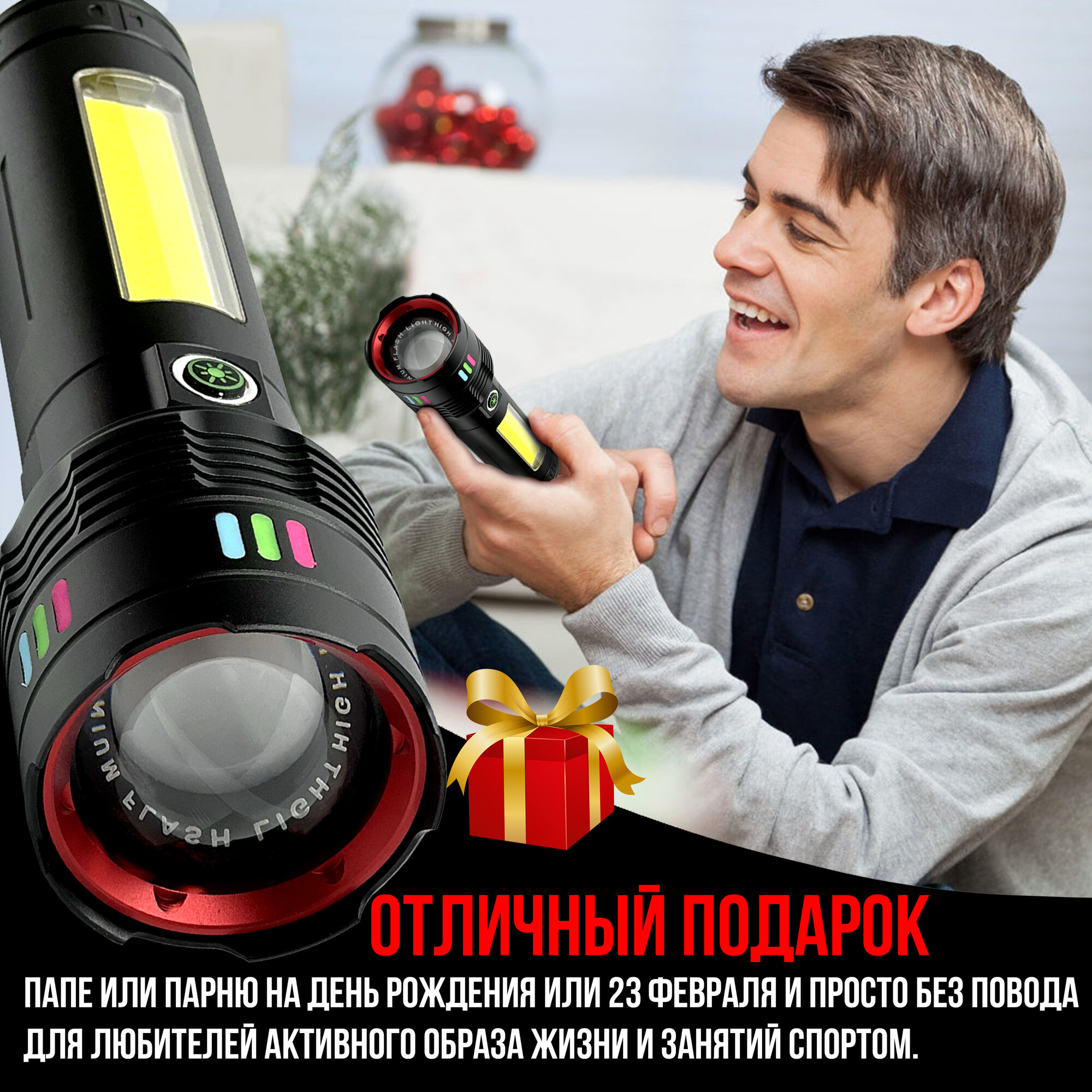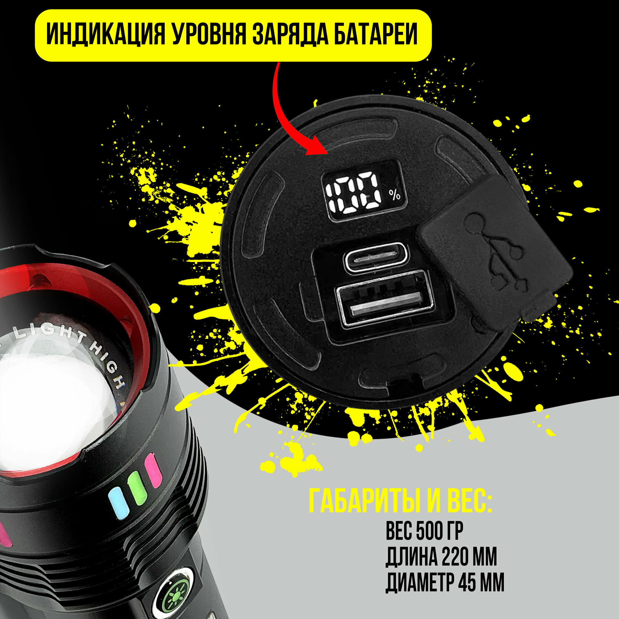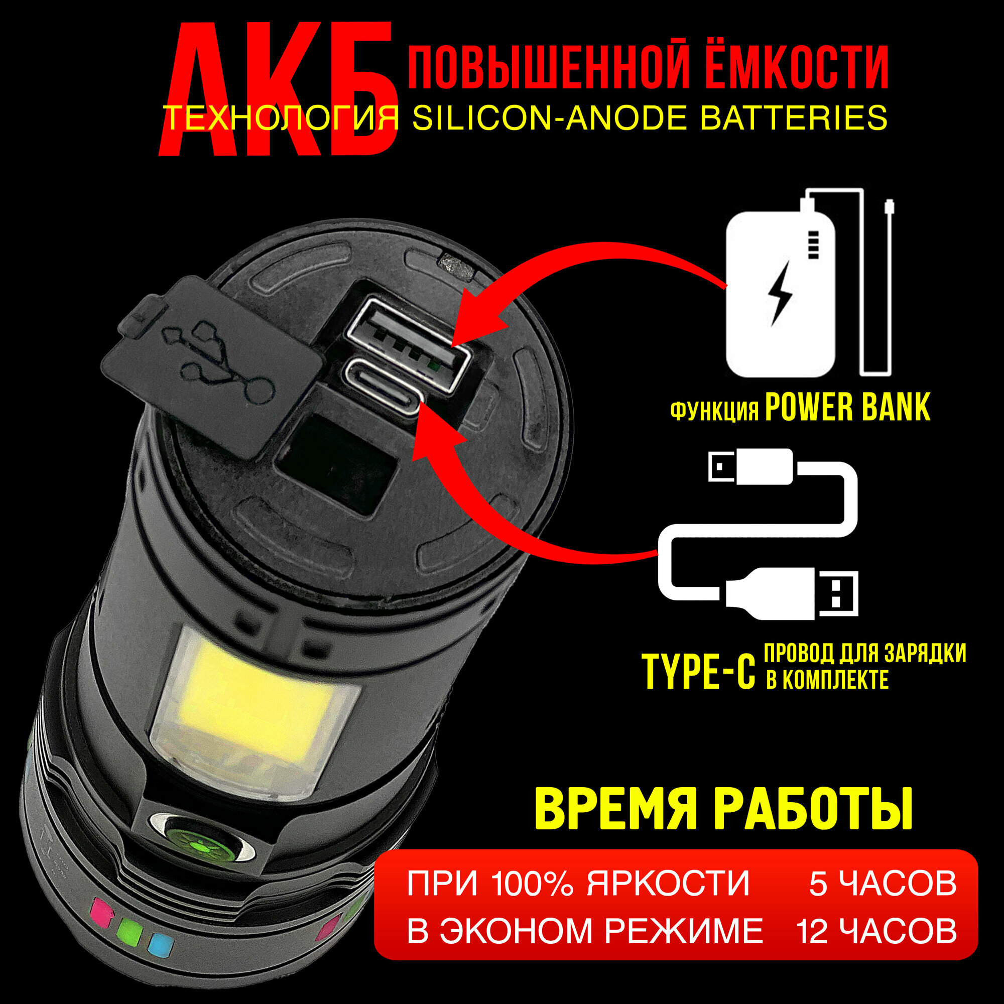 Царь фонарь аккумуляторный 50000 Лм - 5 км дальность, 12 часов работы, лазерный светодиод последнего поколения 7в1 интересное: