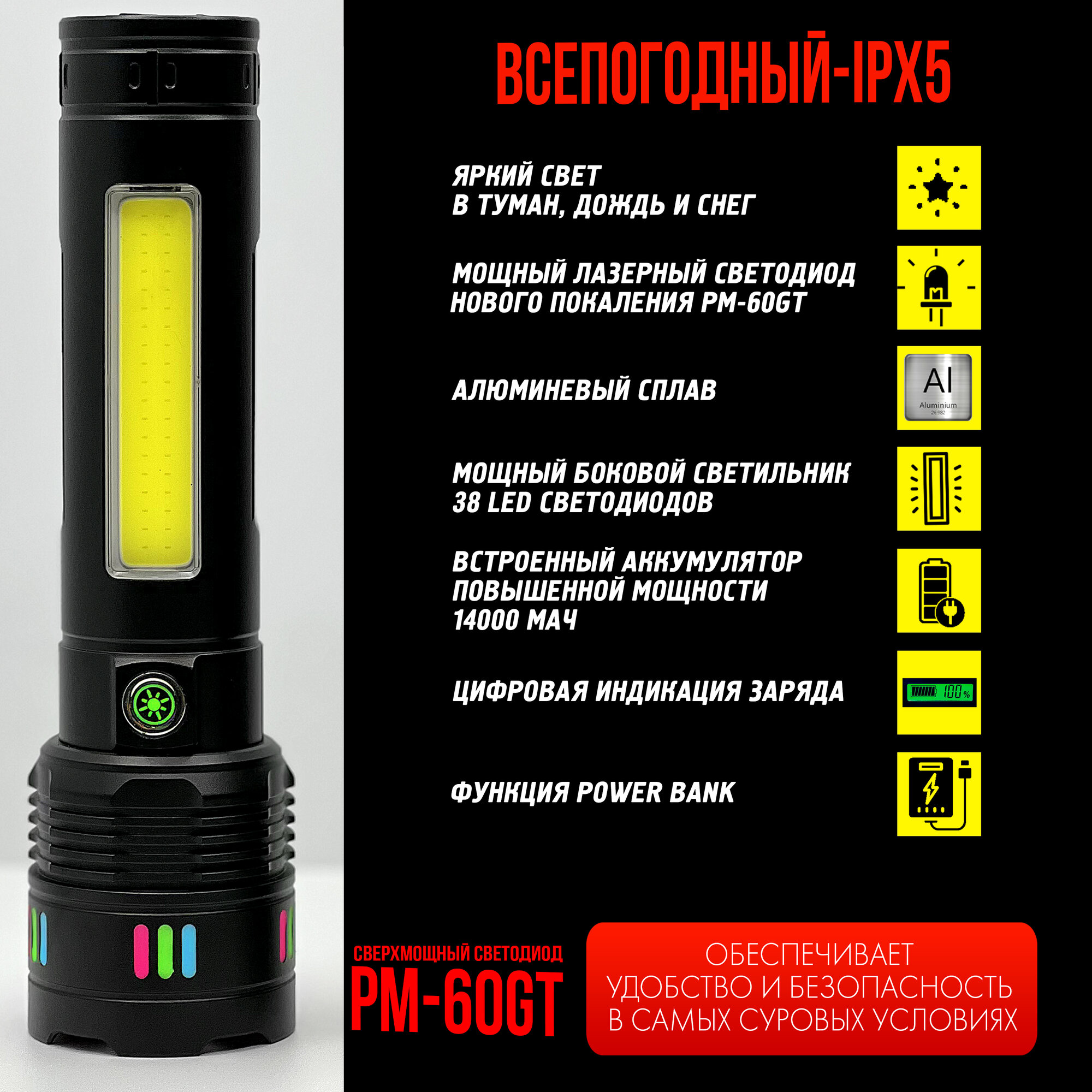 Ниже Вы можете прочитать отзывы на Царь фонарь аккумуляторный 50000 Лм - 5 км дальность, 12 часов работы, лазерный светодиод последнего поколения 7в1, ознакомится с подробными характеристиками, посмотреть интересные обзоры и фотографии на Царь фонарь аккумуляторный 50000 Лм - 5 км дальность, 12 часов работы, лазерный светодиод последнего поколения 7в1.
