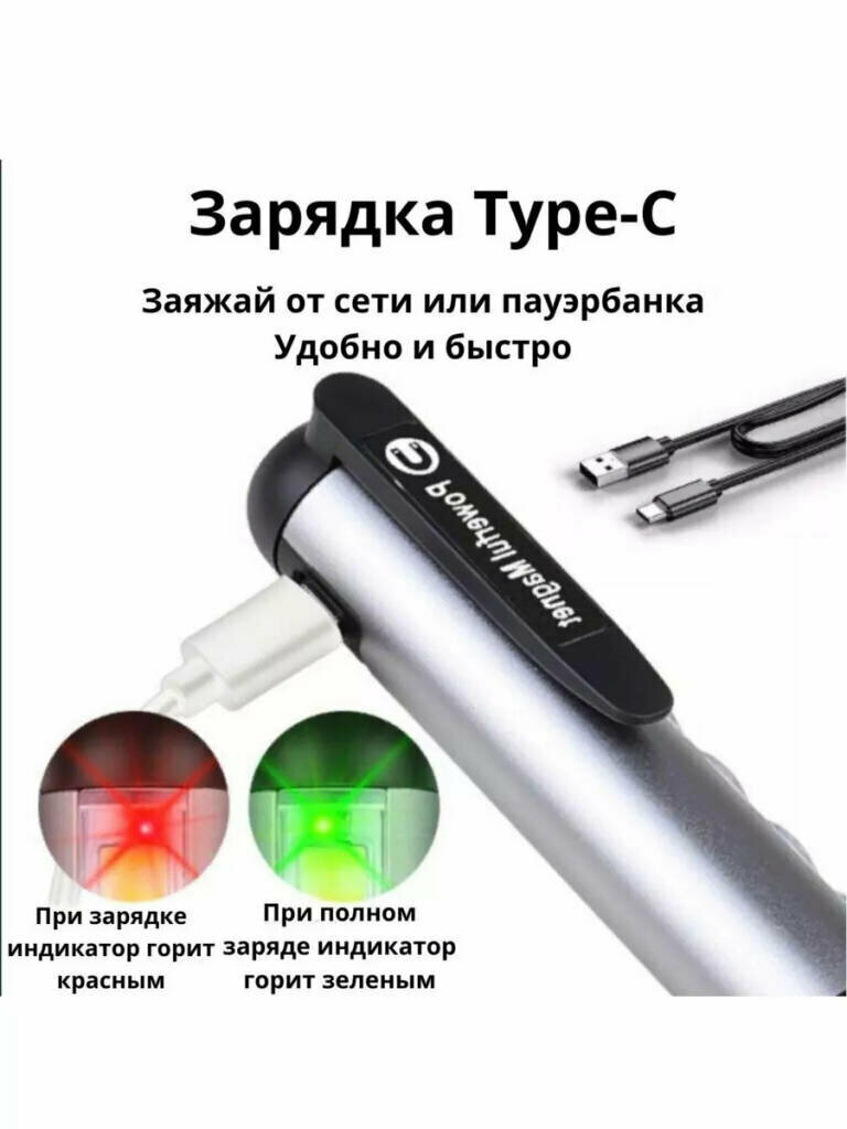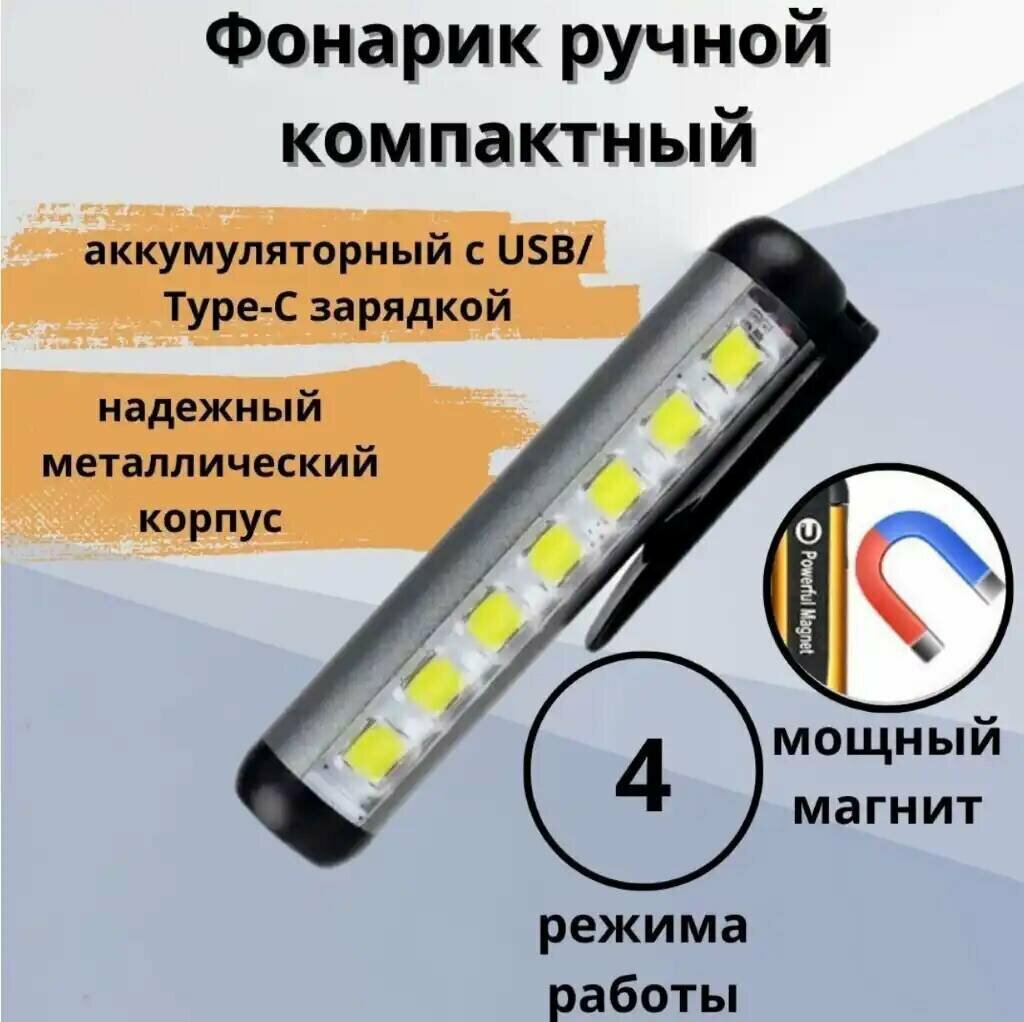 Мощный карманный портативный фонарь. С зарядкой Tape-C USB, магнитом и клипсой, серебристый от Shark-Shop интересное: