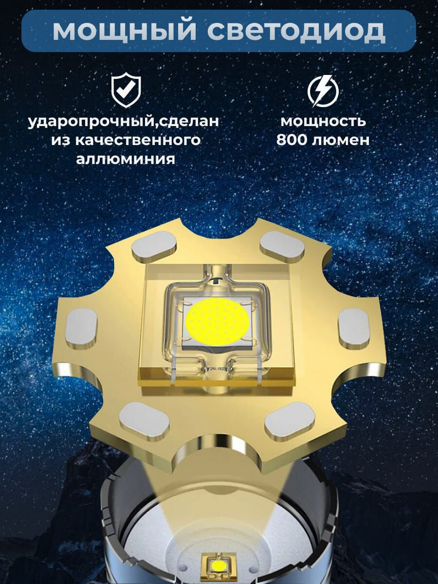 Яркий фонарь для дома, дачи, машины, охоты и рыбалки с повышенной яркостью 500LM и двумя 18650 аккумуляторами интересное: