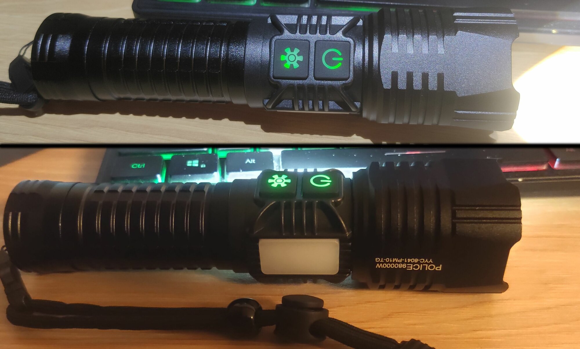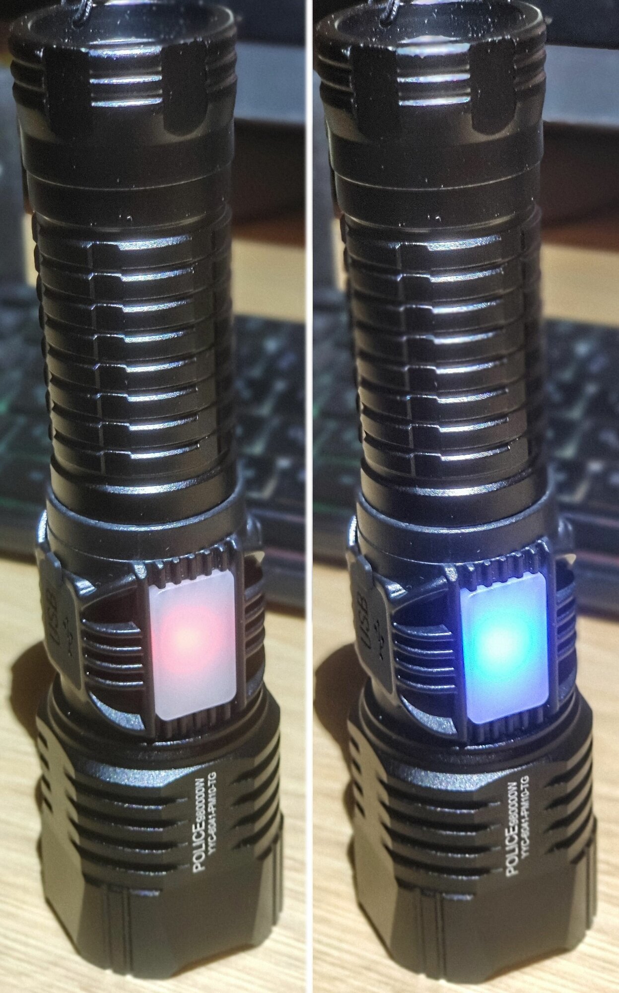 Тактический фонарь YYC-6041-PM10-TG с дальностью луча 1км + PowerBank дополнительный мягкий свет + красно-синее освещение интересное: